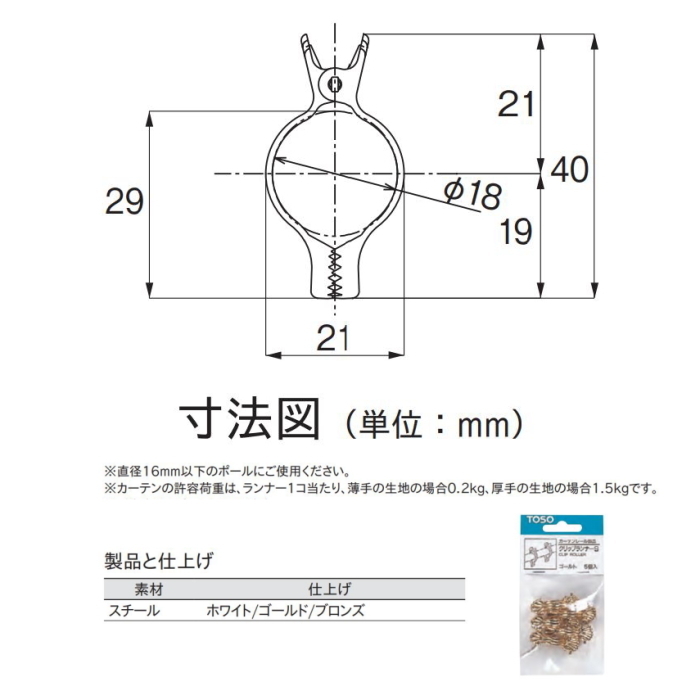 カーテンアクセサリー トーソー カーテンレール TOSO クリップランナー リーフA(15ケ入り)