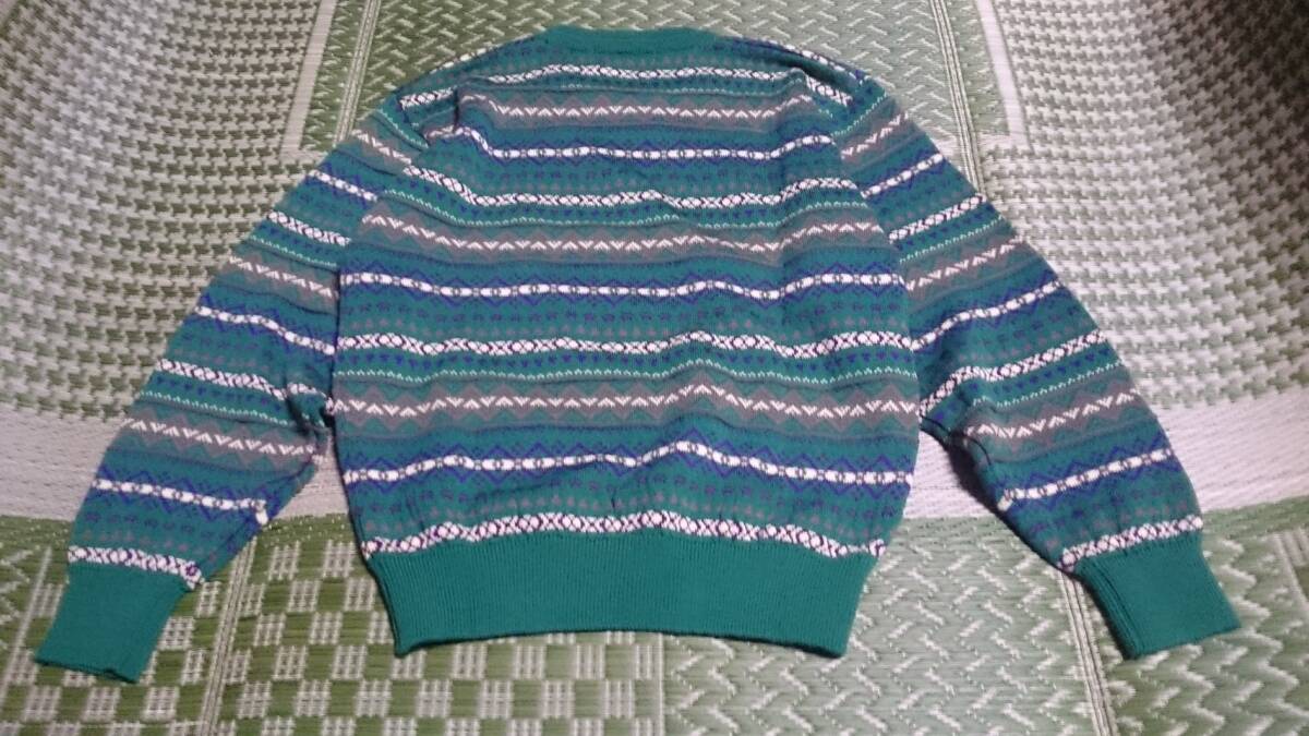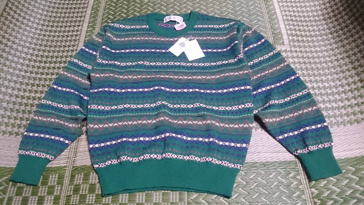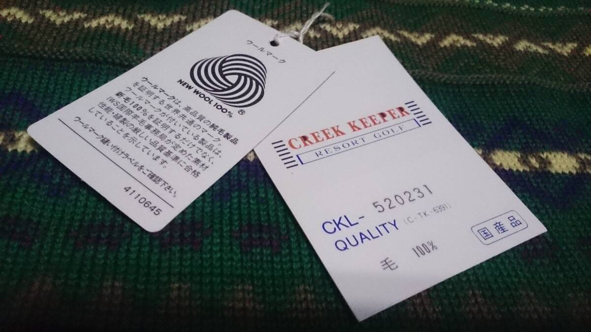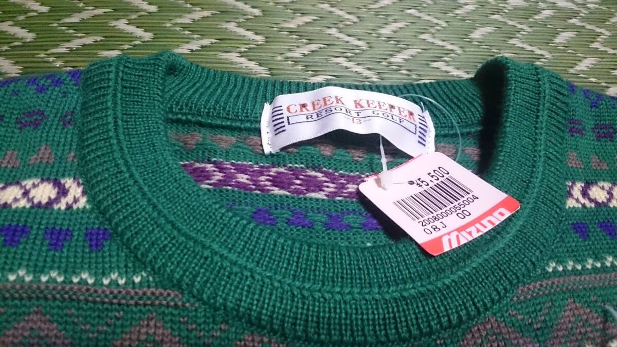未使用 タグ付 CREEK KEEPER RESORT GOLF MIZUNO クリークキーパー ウール100 3D/立体編 ボーダー柄 ゴルフ ニット セーター 緑系 レディースLL/メンズM位 ユニセックス