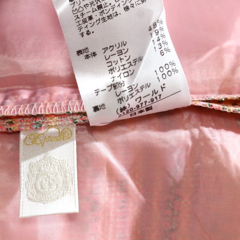 Eprouve エプローブ 株) ワールド 春 夏 ラメ サマーツイード タイト ツイードスカート M 9号 ピンク グリーン 緑