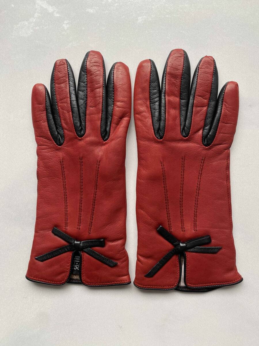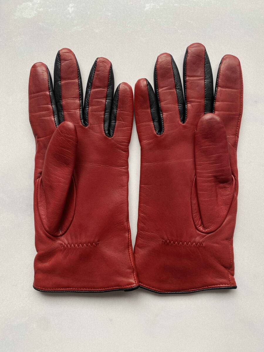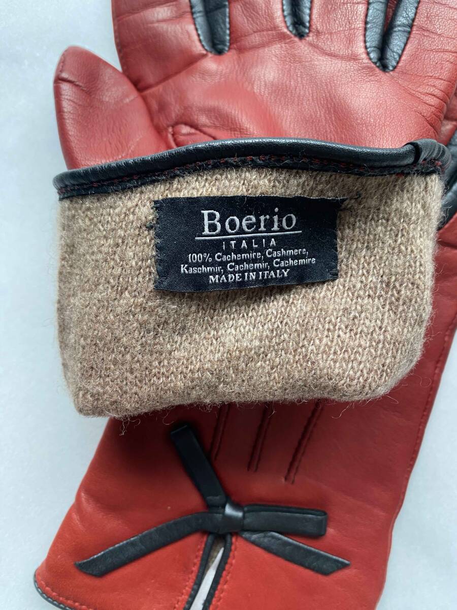 【美品】イタリア製 Boerio レディース レザーグローブ 革手袋 レッドブラック サイズ7 カシミア裏地