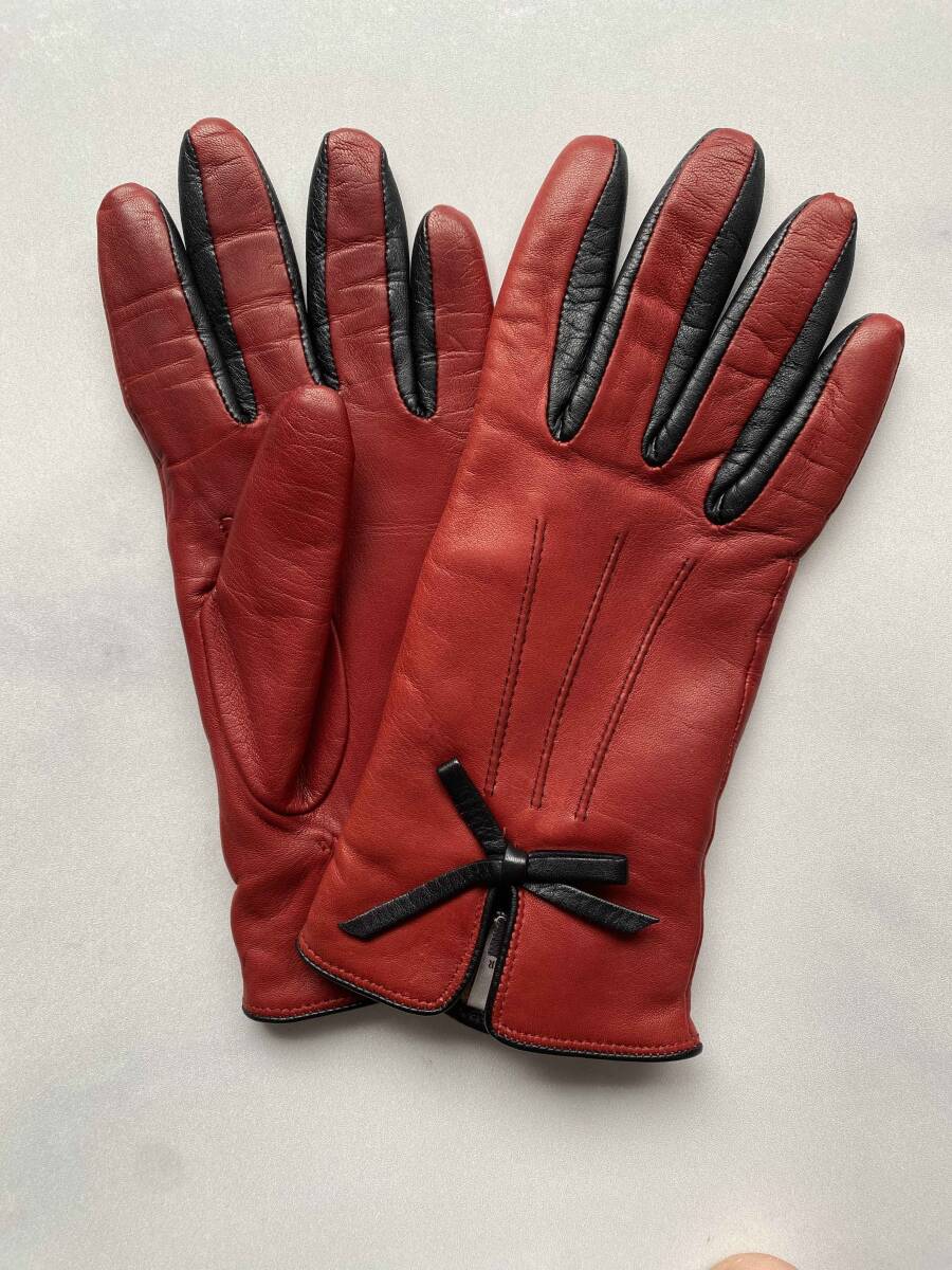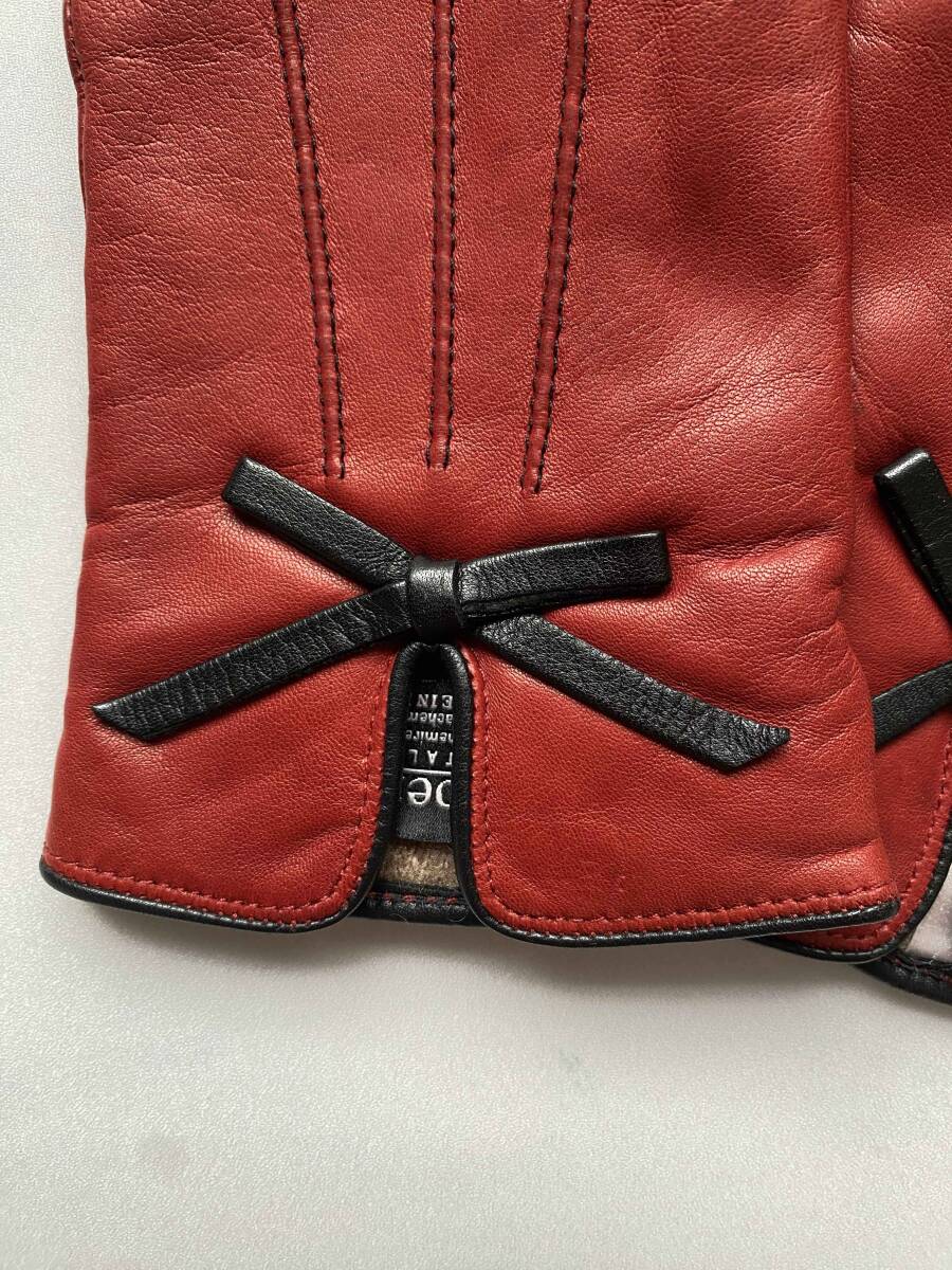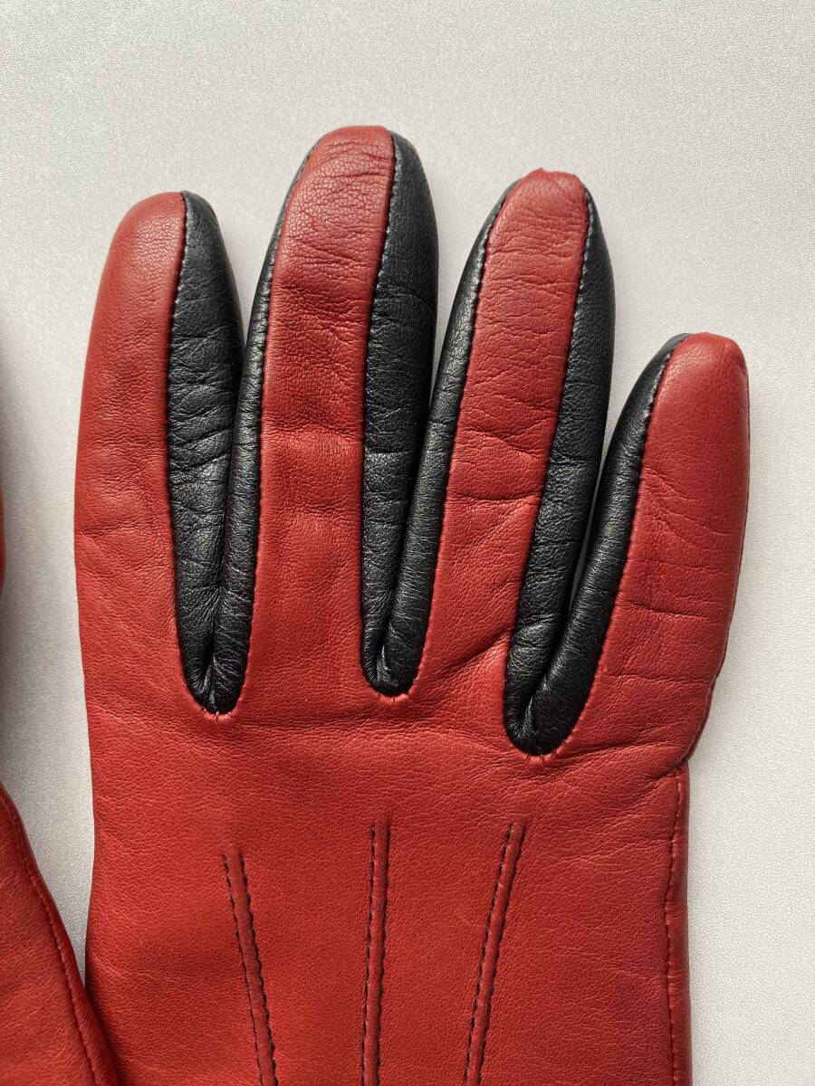 【美品】イタリア製 Boerio レディース レザーグローブ 革手袋 レッドブラック サイズ7 カシミア裏地