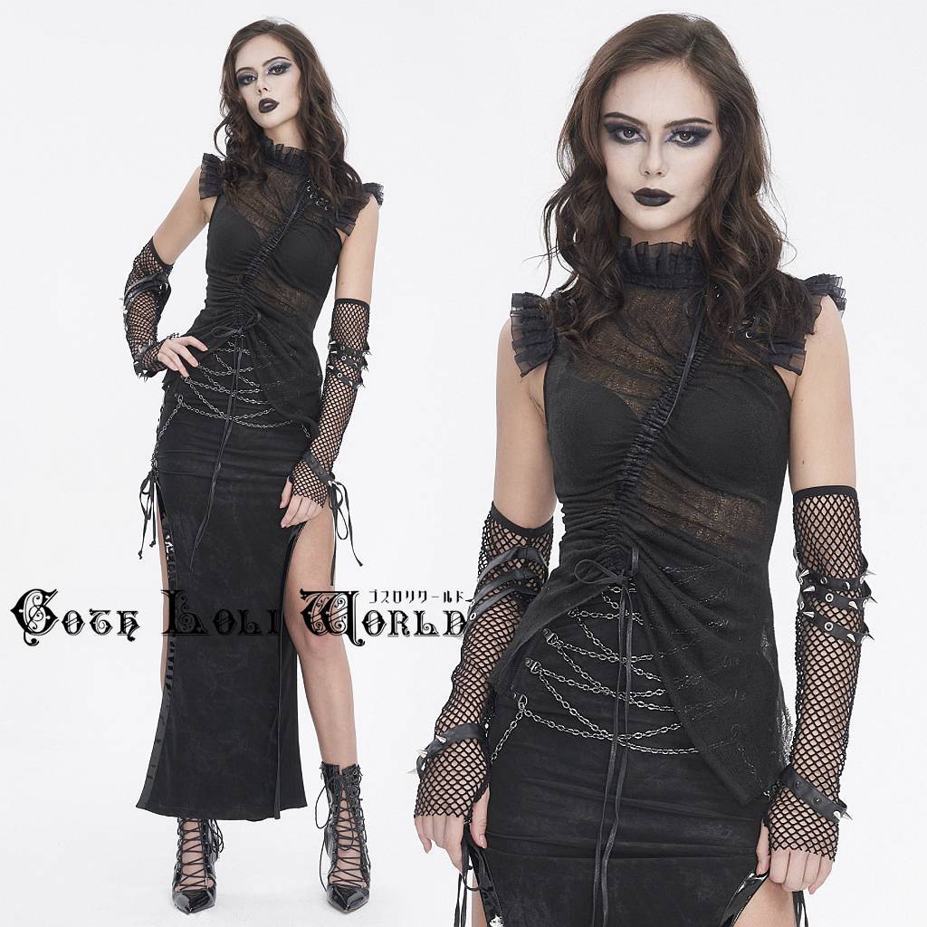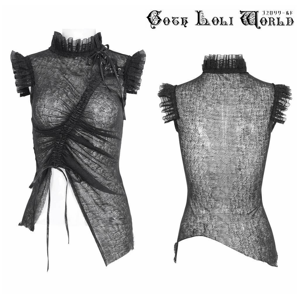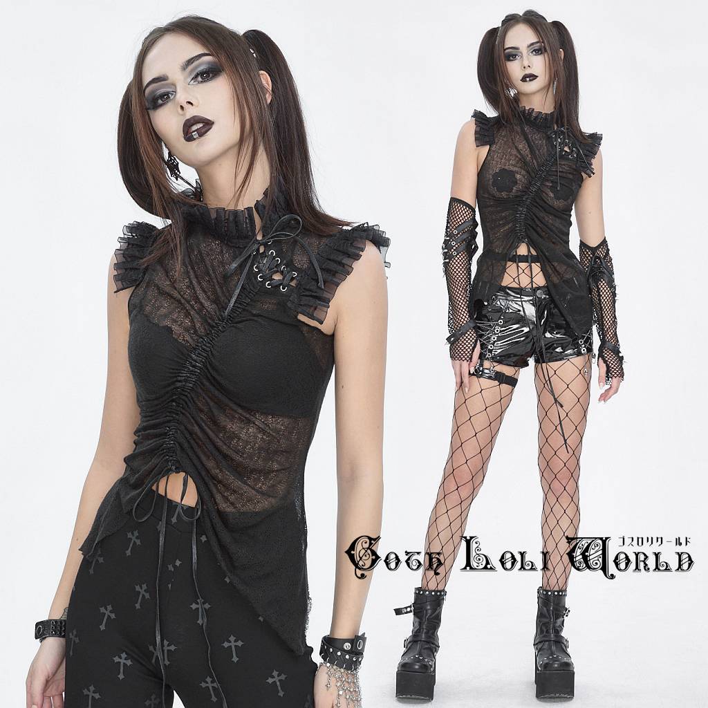 即納 SR016-XL シースルーシャーリングシフォンフリル変形 カットソー ファッション ゴシック ゴスロリ パンク ロック ビジュアル系