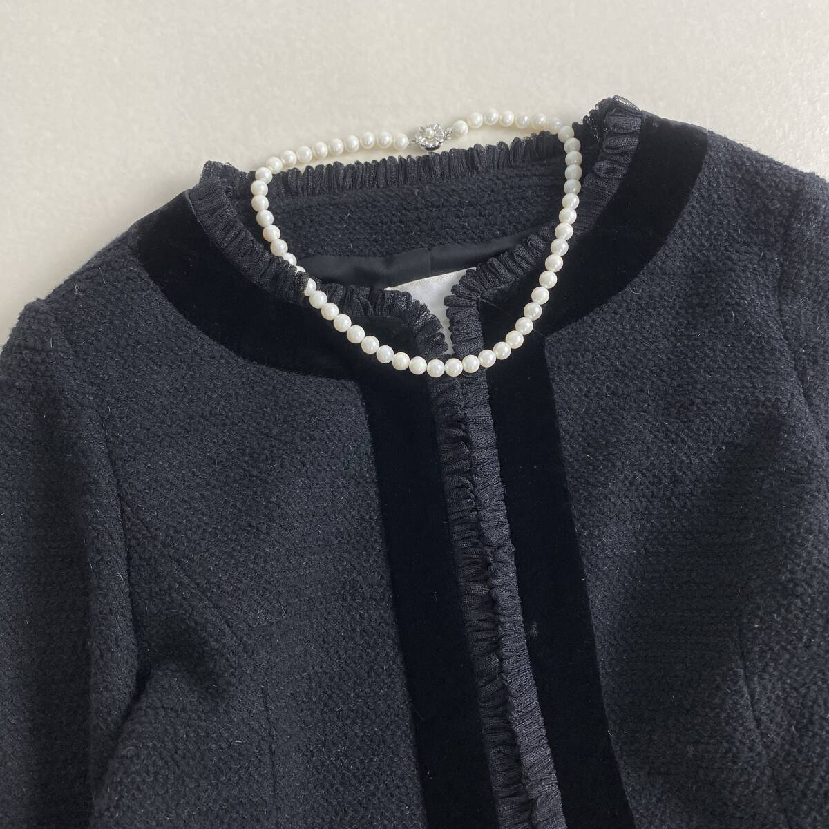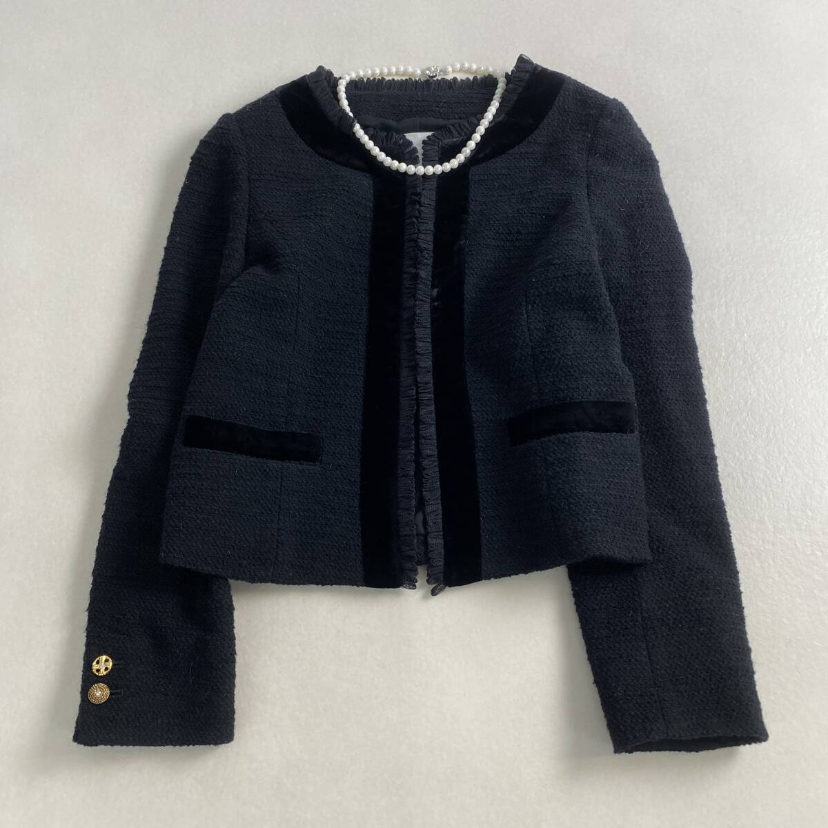 【ポイント】KUMIKYOKU セレモニースーツ 黒 ツイードノーカラー M