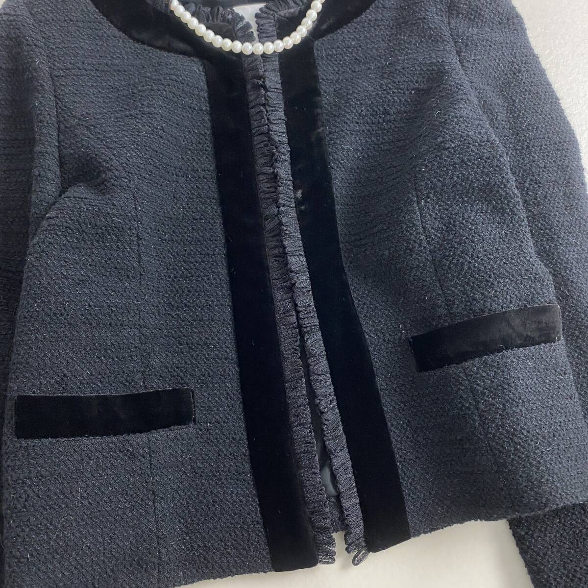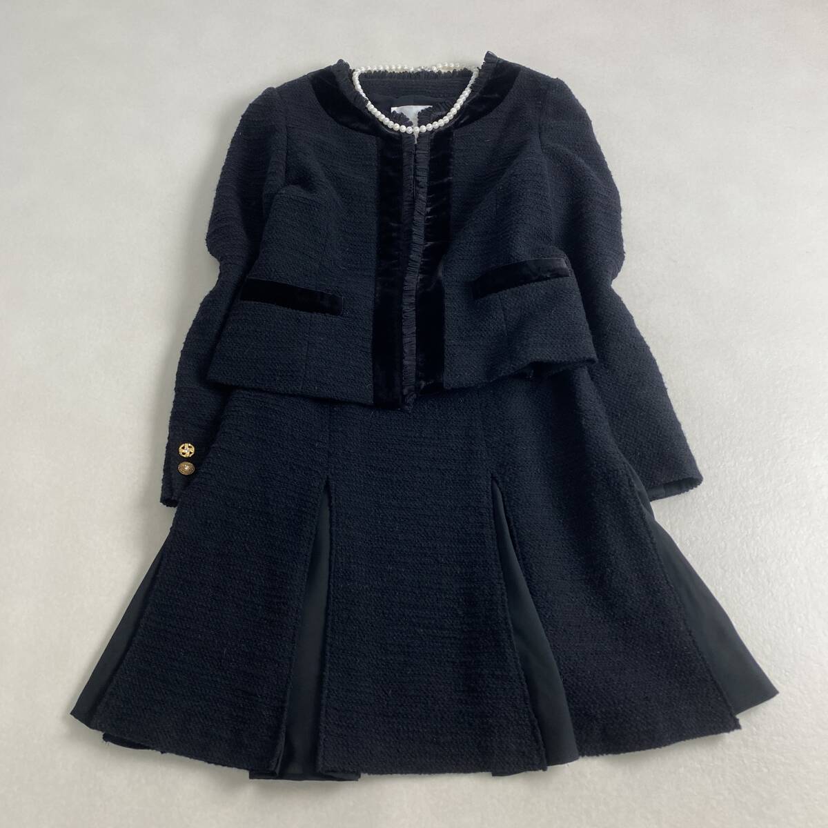 美品 クミキョク スーツ KUMIKYOKU セレモニースーツ 黒 ツイードノーカラー M
