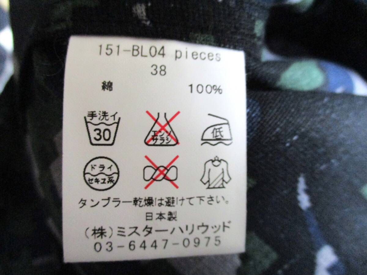 サイズ表記は38、100%コットン、日本製、色はマルチカラーです。