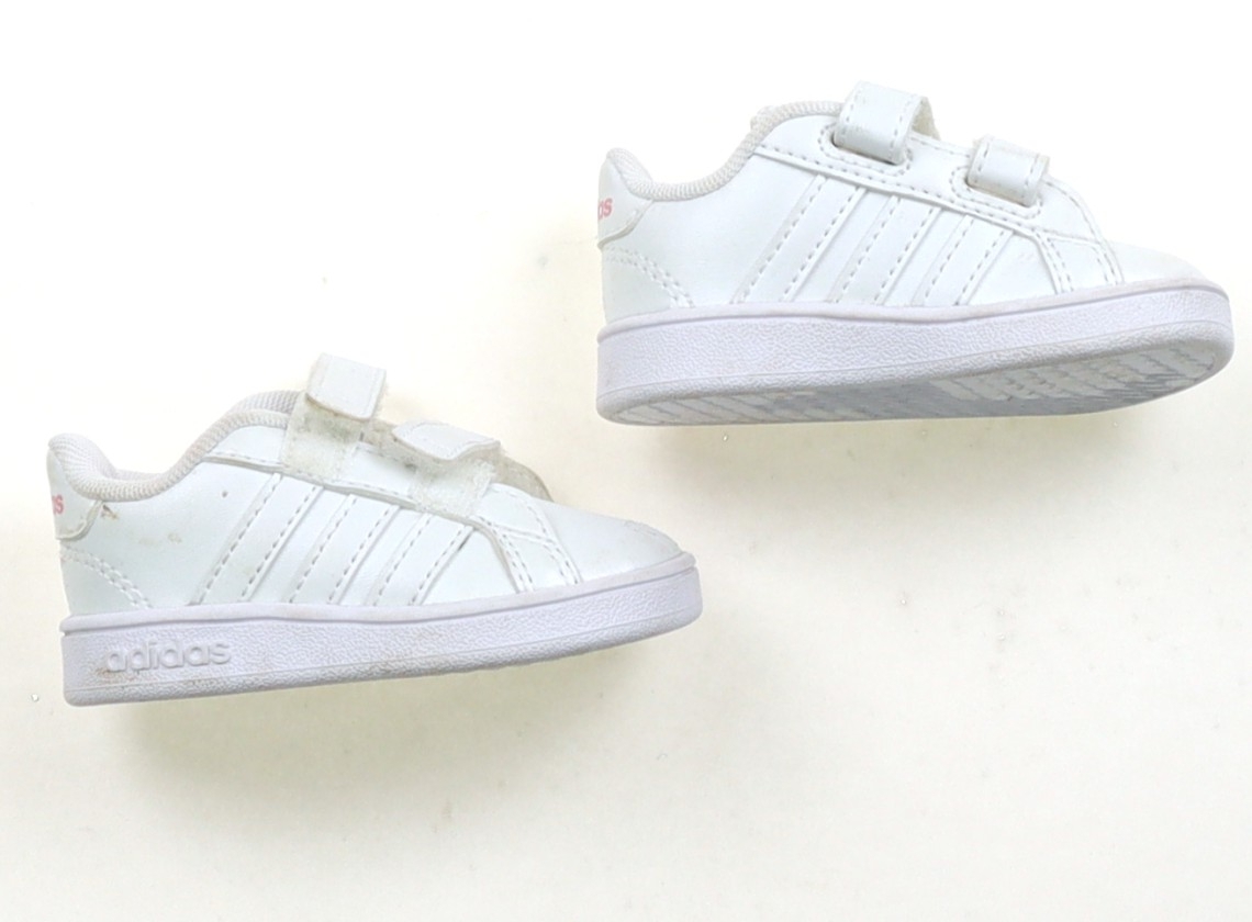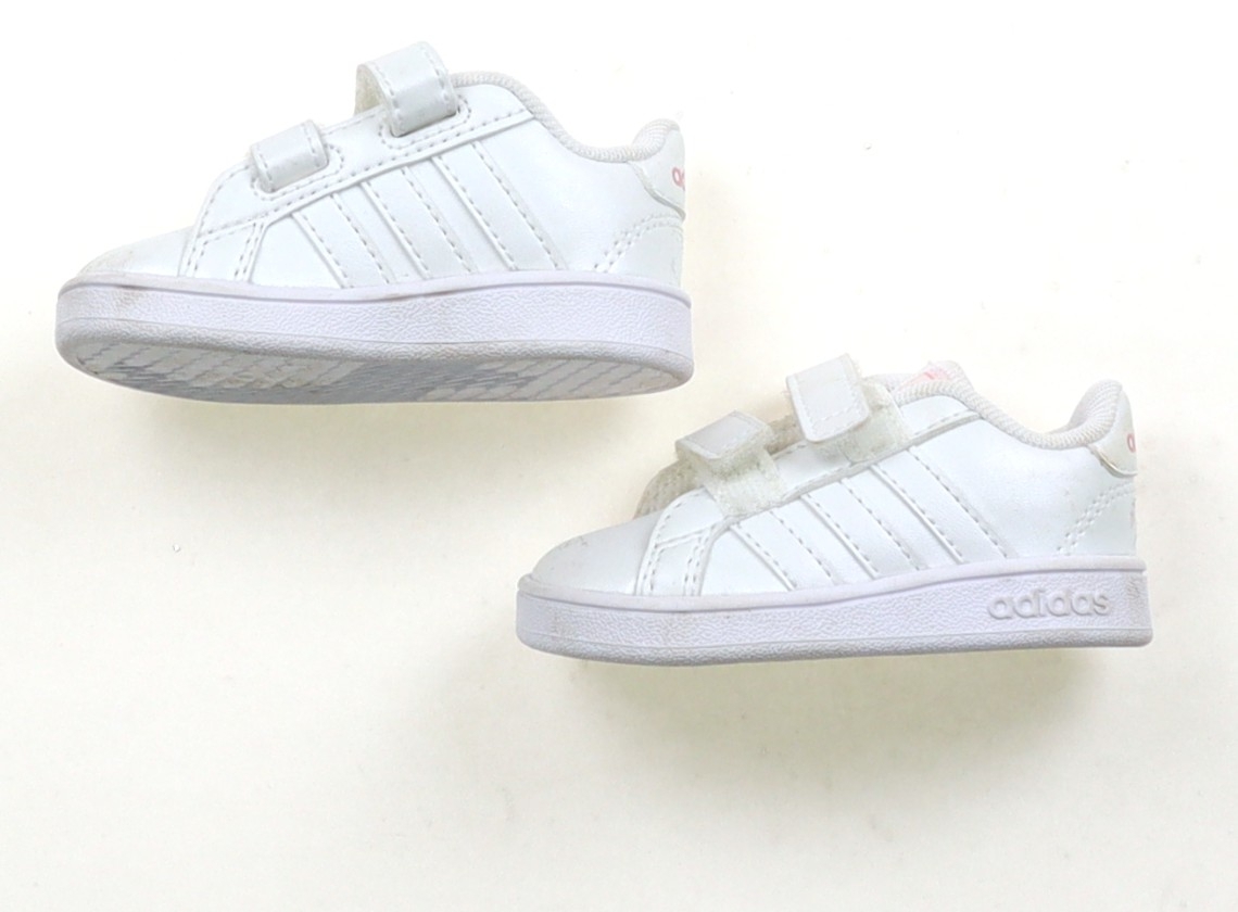 実際のサイズ表記は10cmです。つま先に記名シールの剥がし跡があります。全体の所々に茶色い汚れが多数ありますが、まだまだお使いいただけます。