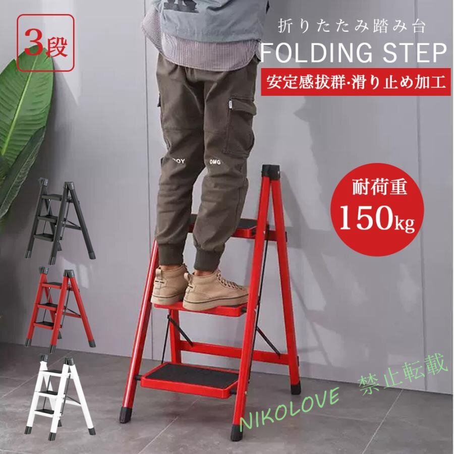 踏み台 脚立 折りたたみ おしゃれ 3段 ステップ台 折りたたみステップ ステップラダー ステップスツール 棚 大掃除 洗車台 はしご 梯子 滑り止め 持ち手 手すり