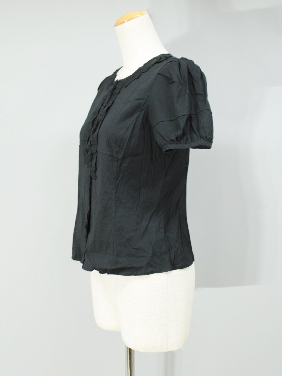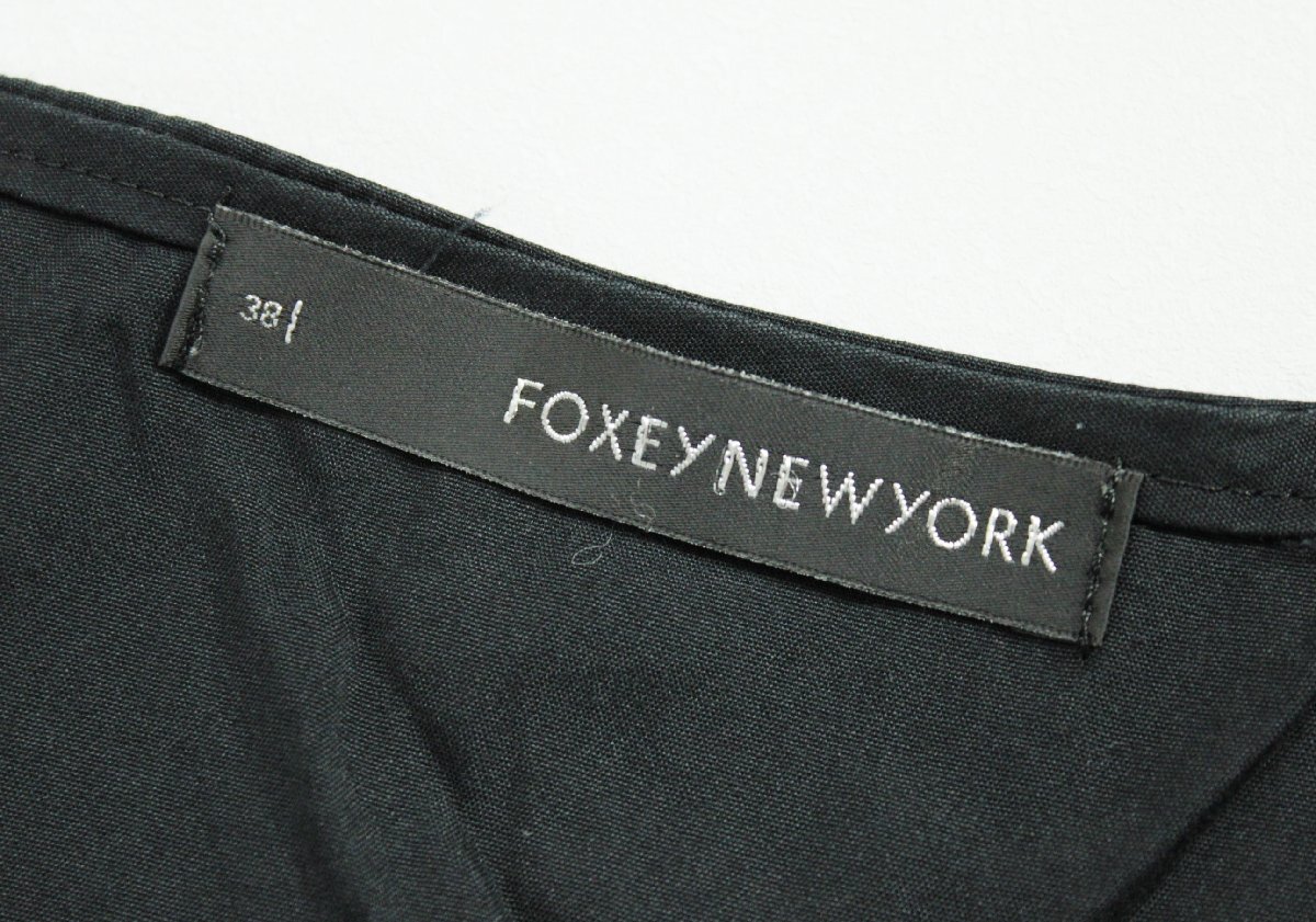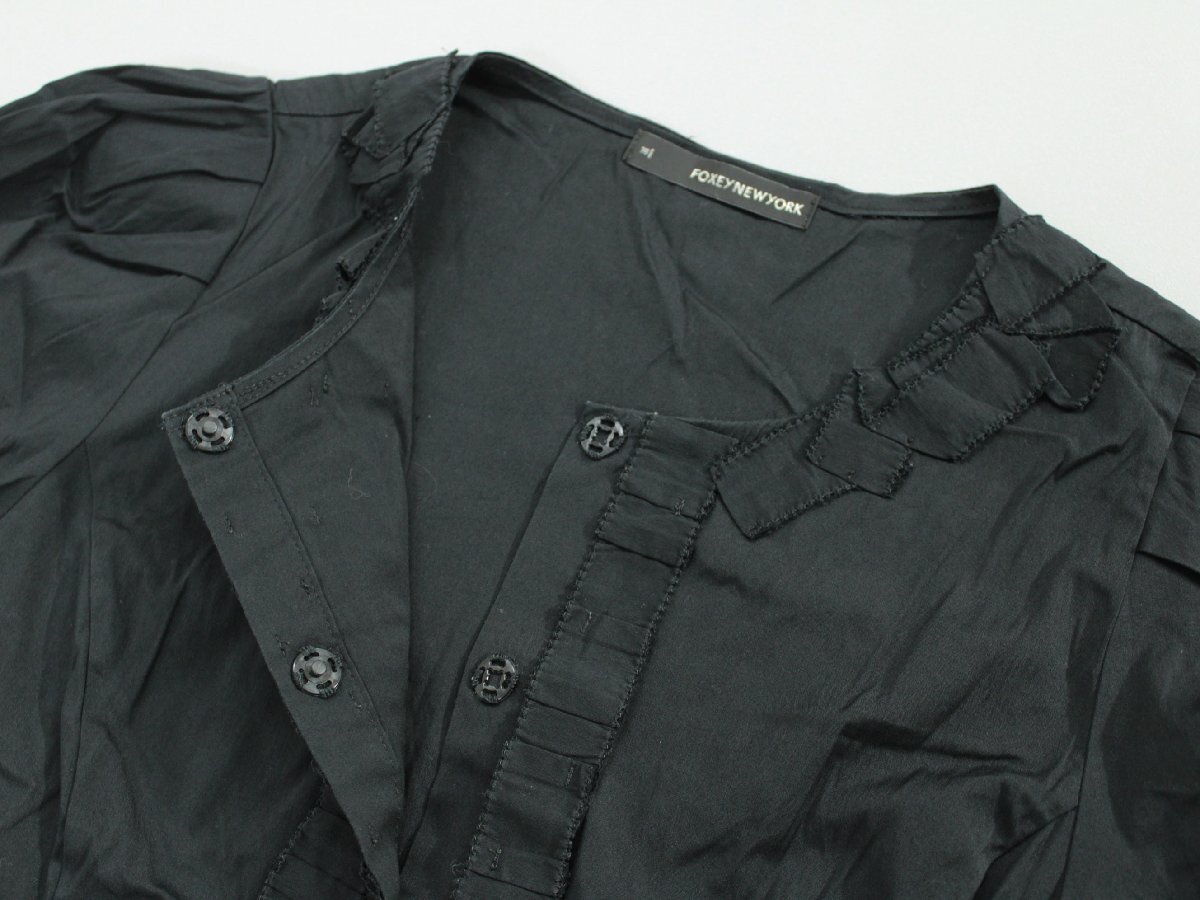 美品/小さいサイズ フォクシーニューヨーク ストレッチコットン半袖フリルブラウス 黒38 am359