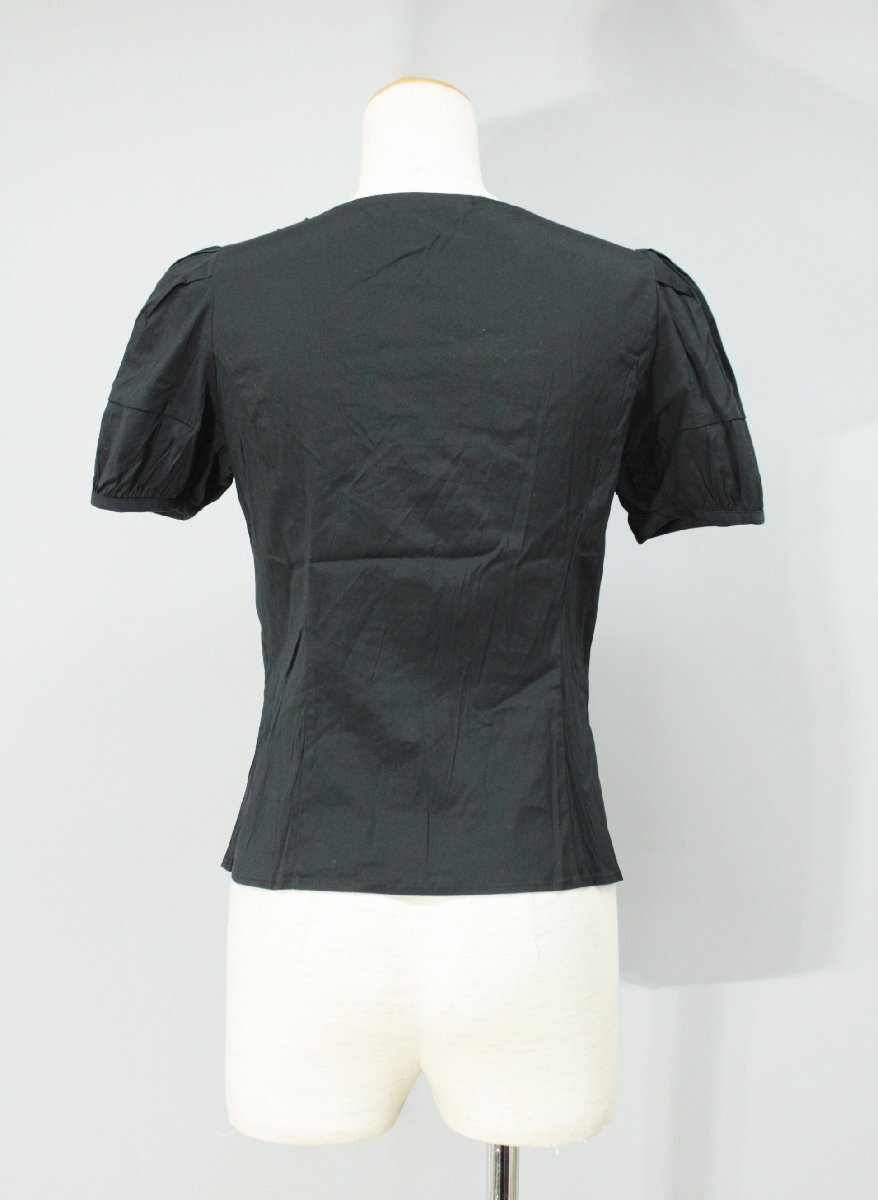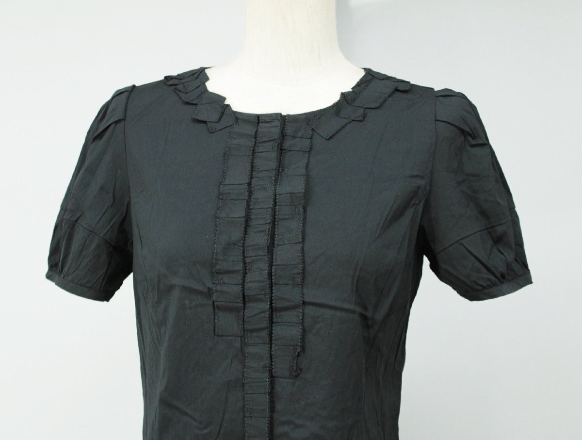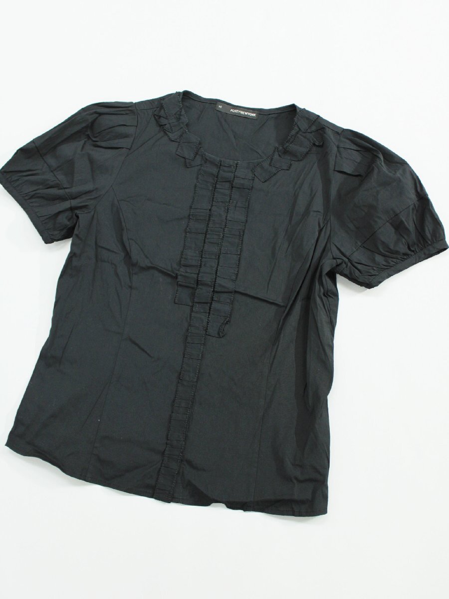 美品/小さいサイズ フォクシーニューヨーク ストレッチコットン半袖フリルブラウス 黒38 am359
