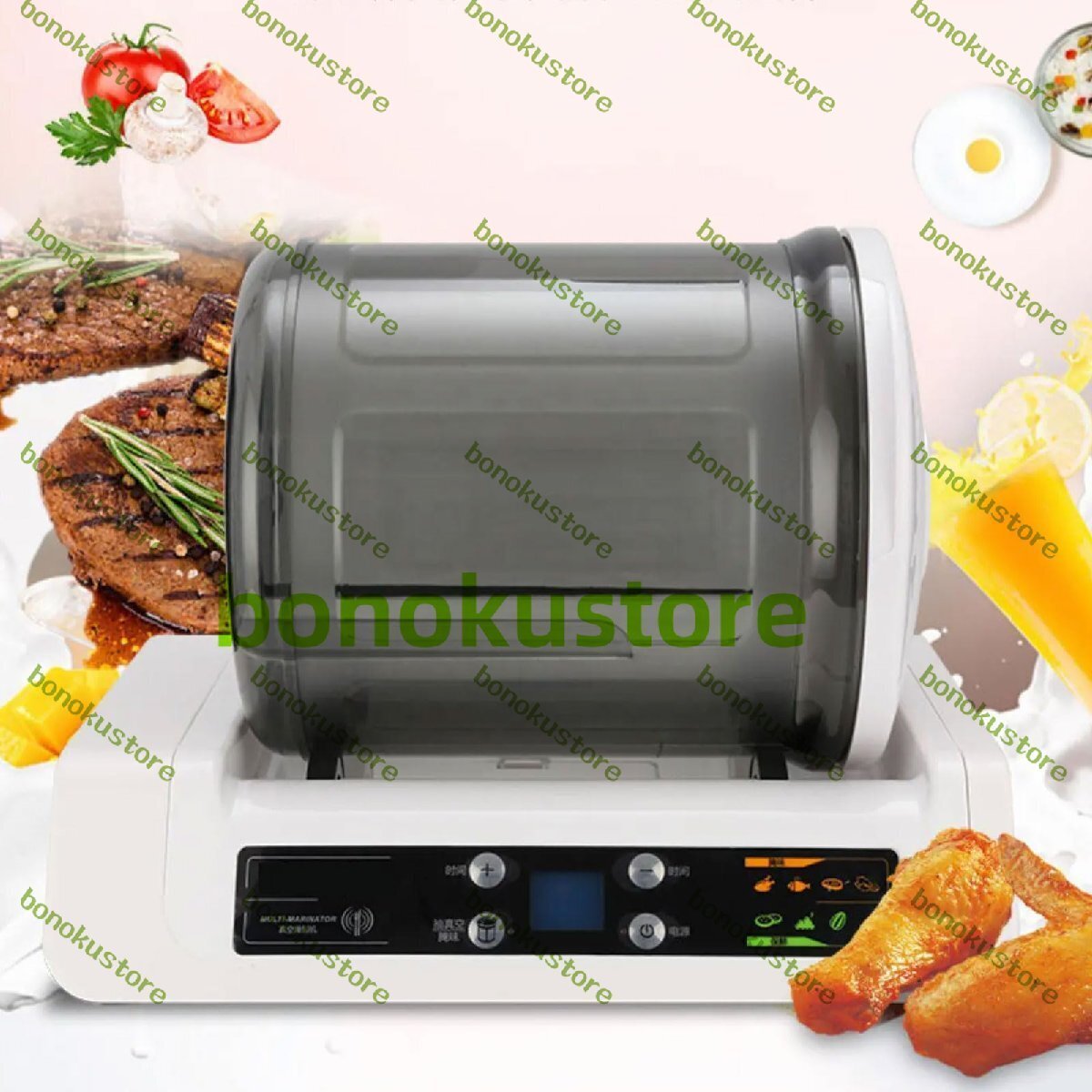 5L ドラム ピクルス機、4W 業務用真空タンブラー マリネーター、LED デジタル ディスプレイ、10 時間タイマー、チキン、ステーキ、ベーコン、シーフード、牛肉用