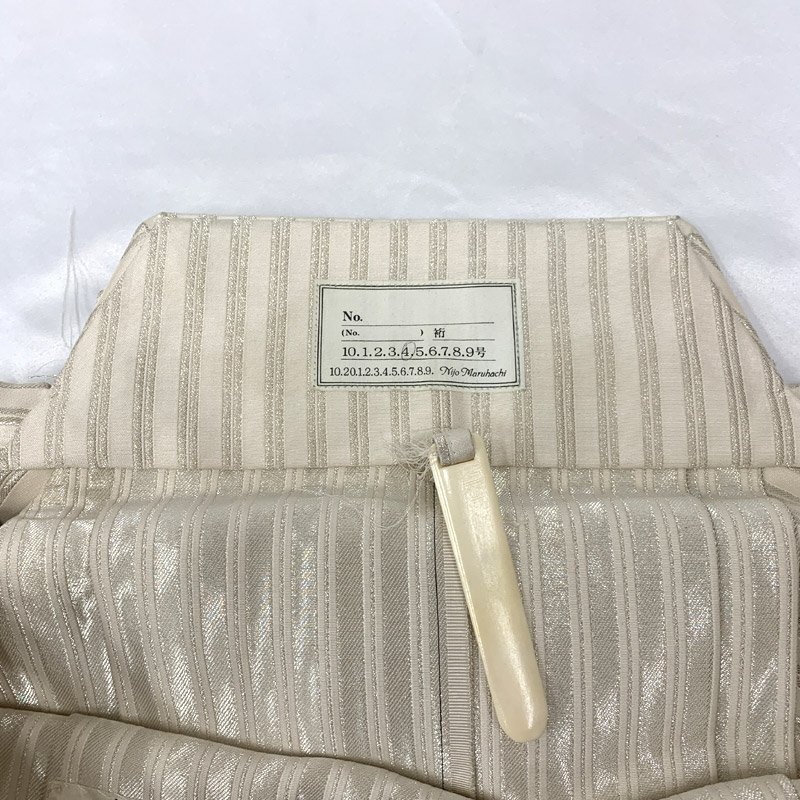 | ■ジュニア袴 男児 白系/黒 (紐下丈 85.5cm)卒業式 十三参り オフホワイトから黒のグラデーションが豪華な行燈袴(スカートタイプ)の袴です。適応身長155cm前後です。 小学校の卒業式、体型にもよりますが、十三参りにいかがでしょうか? USED品で多少の汚れなどの使用感はございますが、特に目立つようなシミ・ダメージはありません。レンタルショップで使用していたため、腰板と前紐の裏にタグが付いております。(なお、保管の際のシワがある場合がございますが、ホームアイロンでとれる程度です。) 【素材】化繊 【色】白系/黒 *モニターによって色味は実際と異なる場合がございます。 【サイズ】紐下丈 85.5cm *素人採寸のため、多少の誤差はご容赦ください。 腰骨からくるぶしの長さを測ります。*腰骨が分かりにくい方は、へそから人差し指1本分下からくるぶしまで測ってください。図ったサイズの+-1㎝は適応サイズです。着付けで+2㎝までは調節できます。身長と袴丈は個人差がございます。同じ身長でも腰骨の位置や体型によっては袴丈が変わってきます。また、測るときは前の正面、おなかを通って測ってください。おなかの出っ張りによってお着付けの際、着丈が短くなる方もいらっしゃいます。 | |