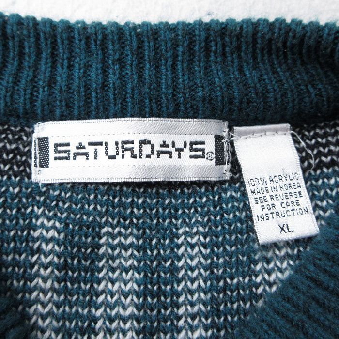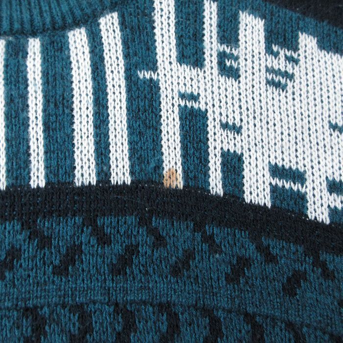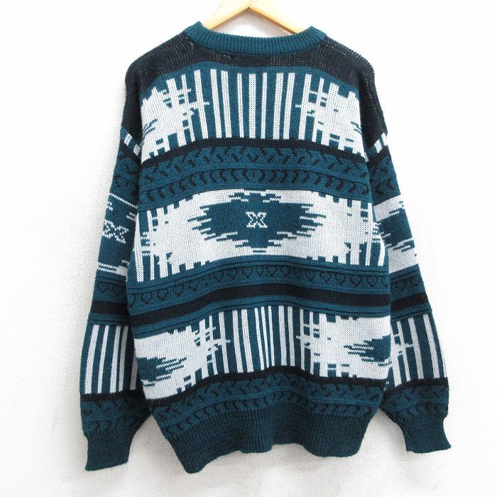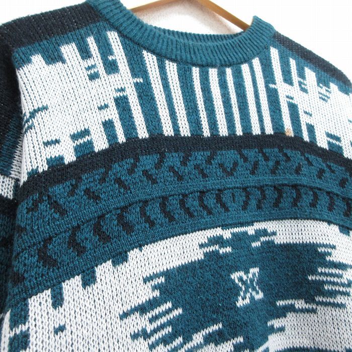 【商品名】 L★古着 長袖 セーター メンズ 90年代 90s ネイティブ柄 ラグ柄 アクリル クルーネック 緑他