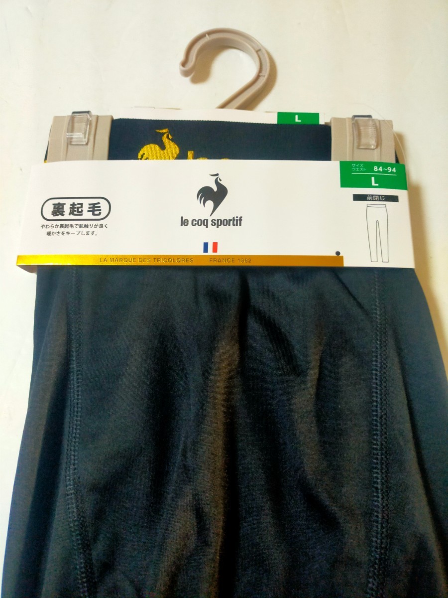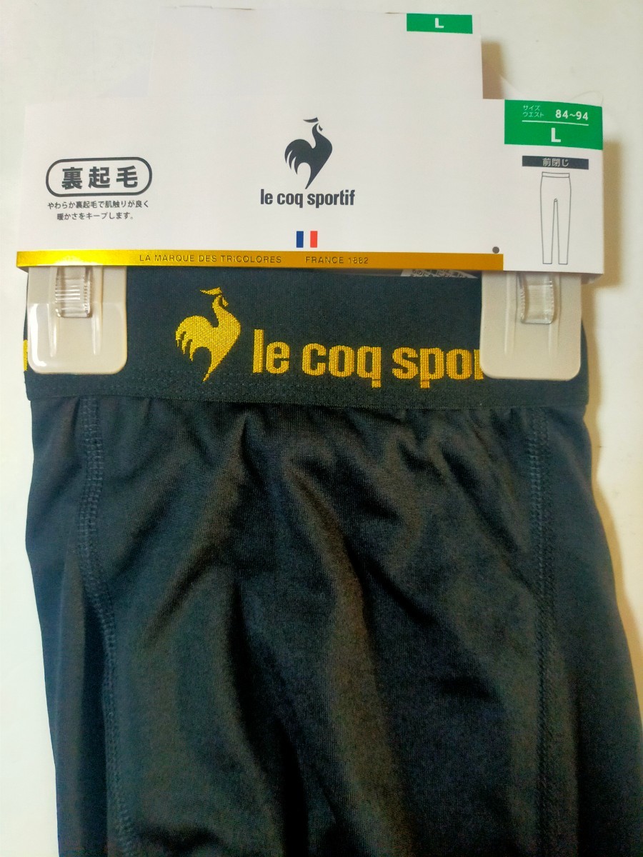 ◆新品・未使用 !lecoq ルコック メンズ 暖かい 裏起毛 タイツ レギンス スパッツ ゴルフ ウェア インナー【無地 黒×金】ブラック