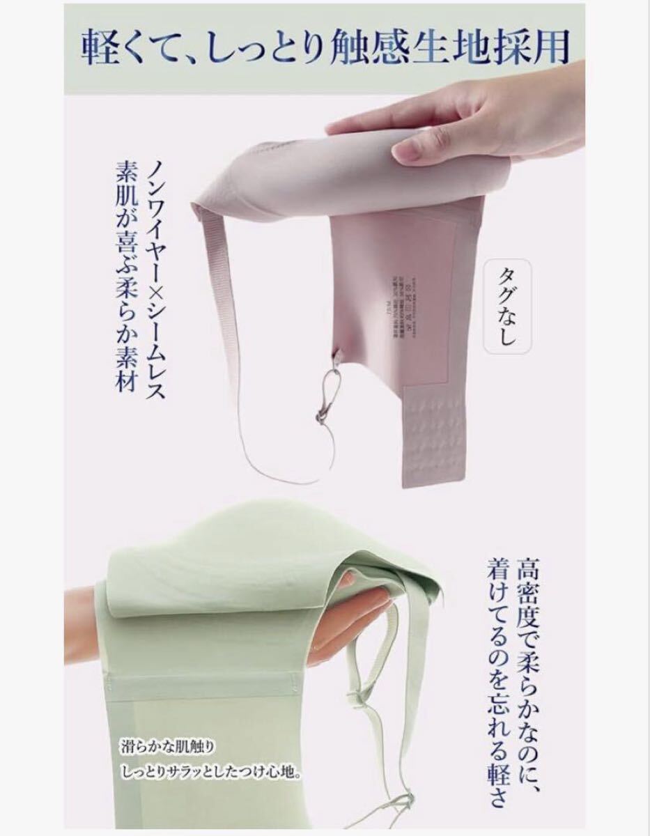 肌に優しい雲感綿を使用した、快適なノンワイヤーブラです!しっとりサラッとした着け心地で、締め付け感が少なく、まるで着けていないような軽やかさ。タグなし・ノンワイヤー仕様で、肌への負担も軽減◎