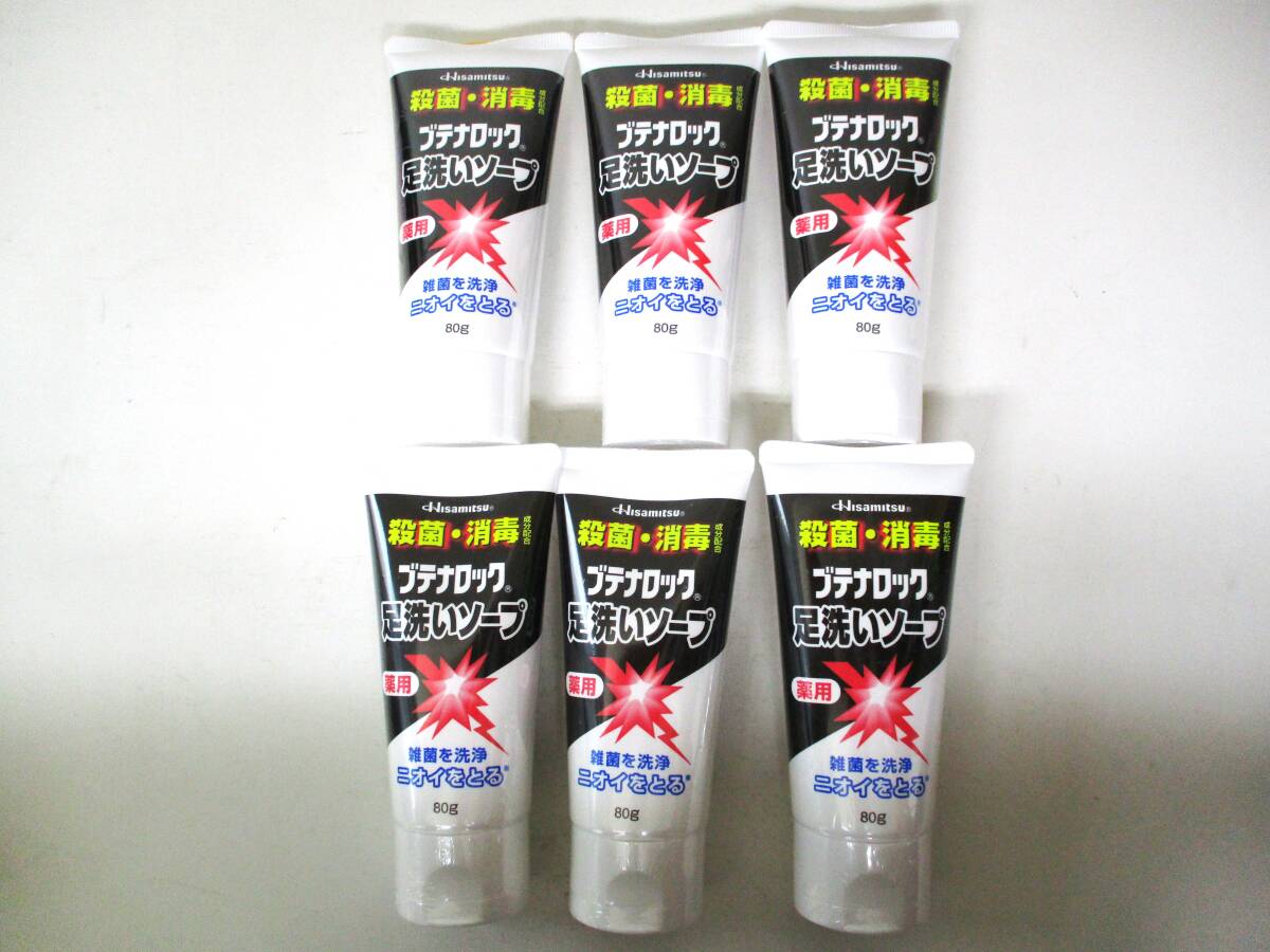 ●久光製薬のブテナロック 足洗ソープ/薬用ソープ/80g×6本のおまとめセットです。です。足のニオイ/体臭/汗臭/背中ニキビ/医薬部外品/新品未開封品です。