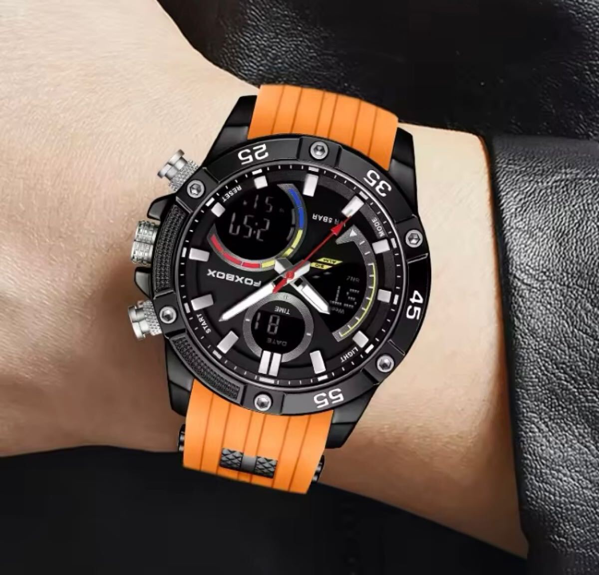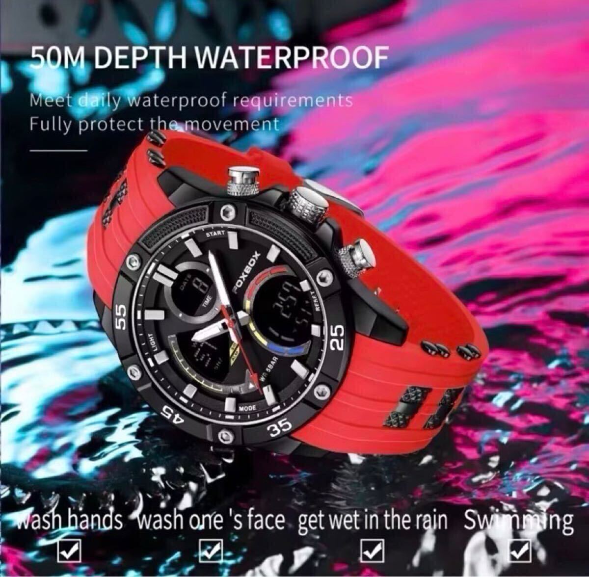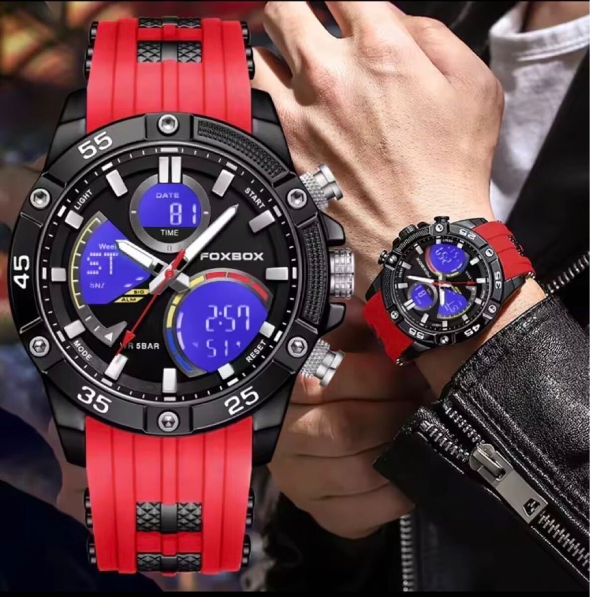 メンズカジュアルスポーツウォッチ レッド 防水腕時計 クロノグラフ トップブランド ビジネスブレスレット