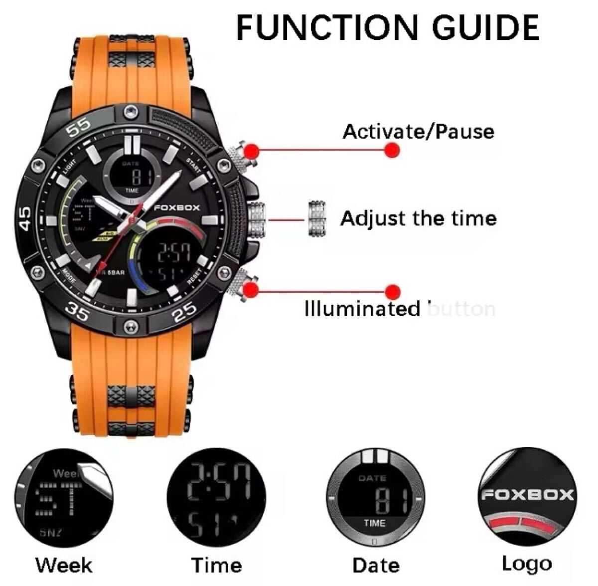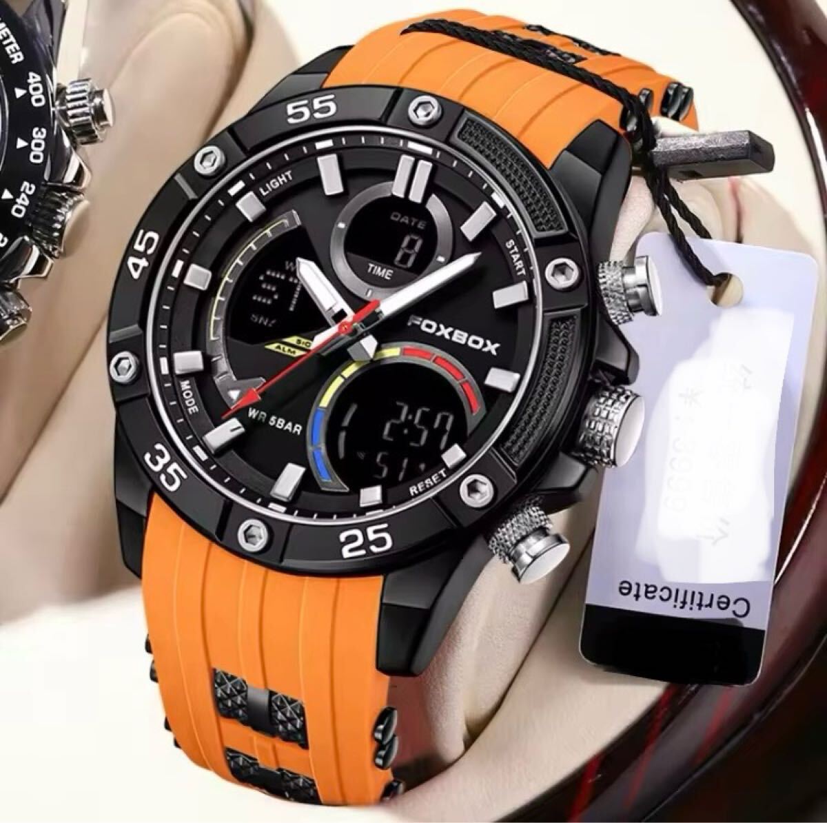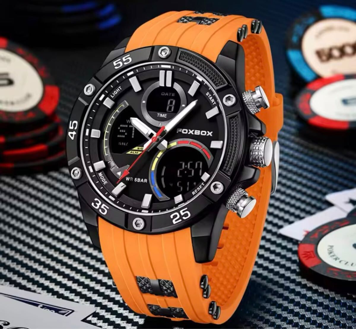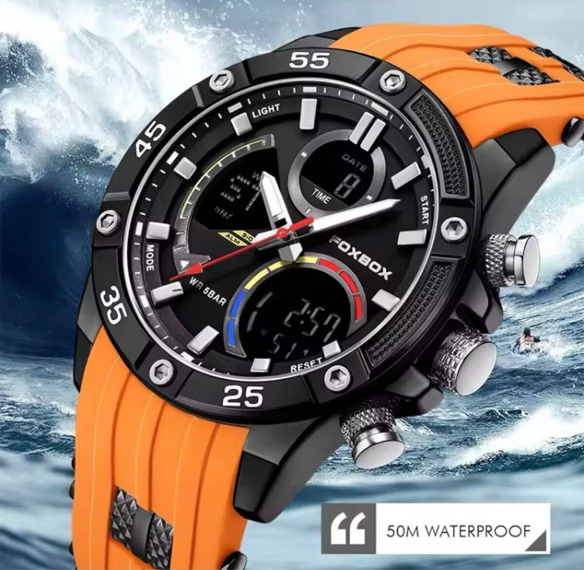メンズカジュアルスポーツウォッチ レッド 防水腕時計 クロノグラフ トップブランド ビジネスブレスレット