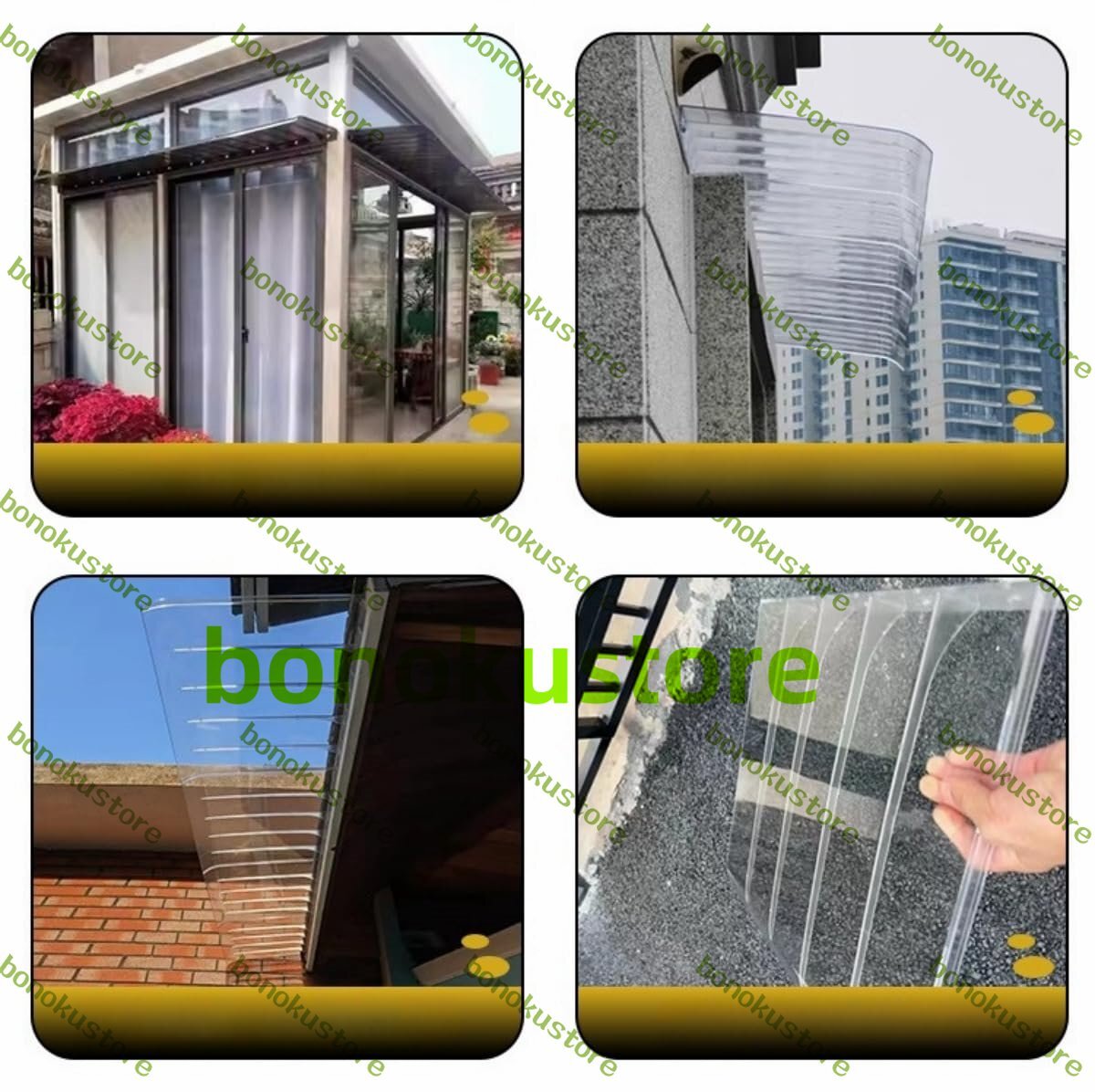 屋根庇 ひさし 雨よけ 屋根 後付け 屋根庇 梅雨対策 玄関 住宅用ひさし 窓の庇 屋外 日除け 住宅庇 耐雨性 PC耐久ボード 梅雨対策 UV雨雪保護(60*120cm)