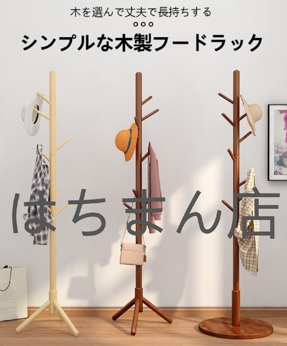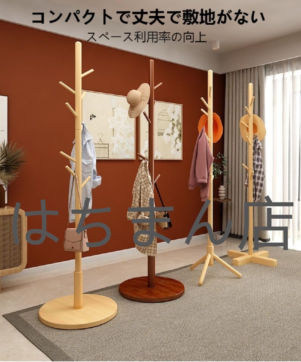 コートハンガー ハンガーラック 8つのフック 幅38×奥行38×高さ170cm 木製 ポールハンガー ポールハンガー (ブラウンです,三角底です)