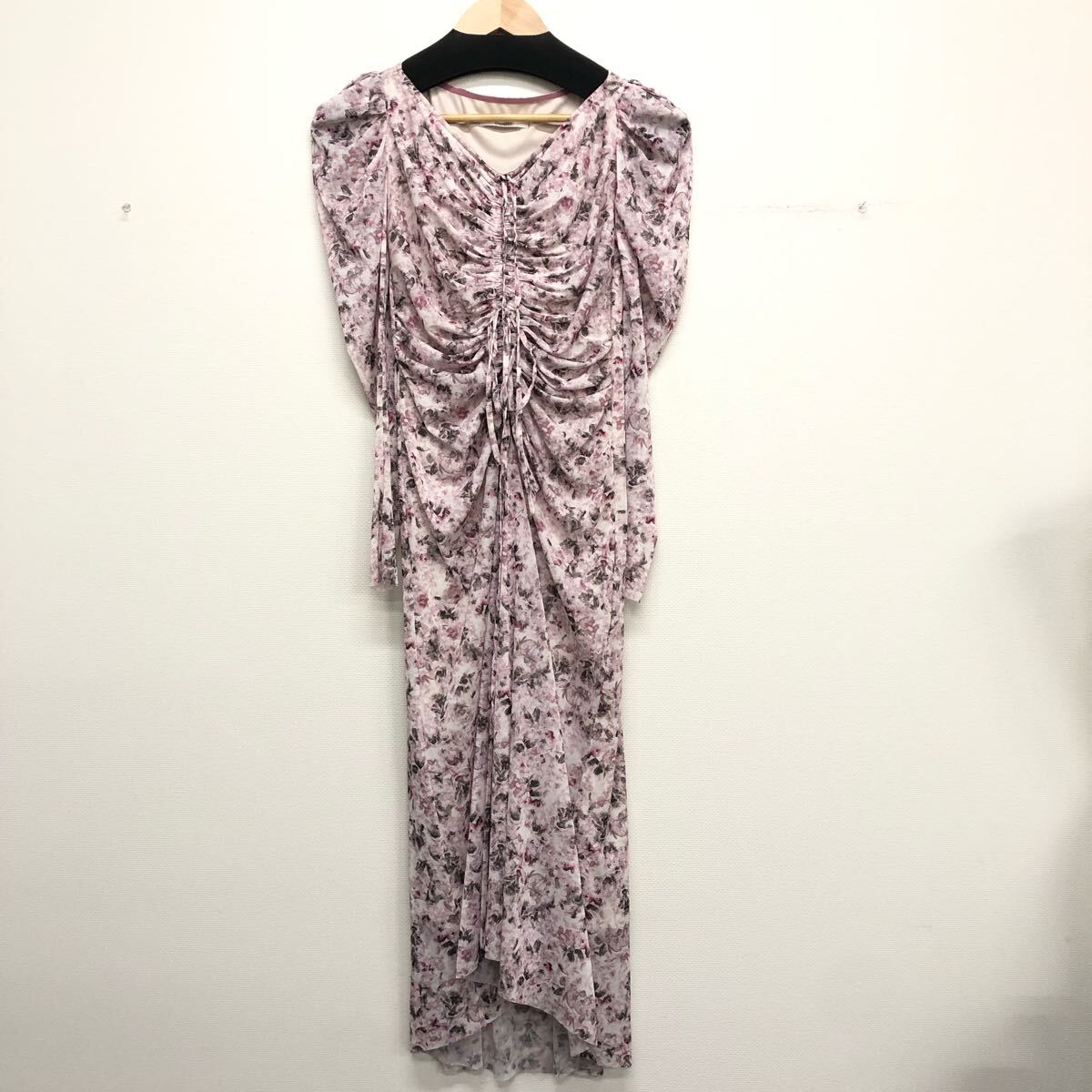 SNIDEL スナイデル★長袖ワンピース サイズO ピンク 花柄 SWCO244107 トリプルリボンチュールカットワンピース ロング丈 長袖 G