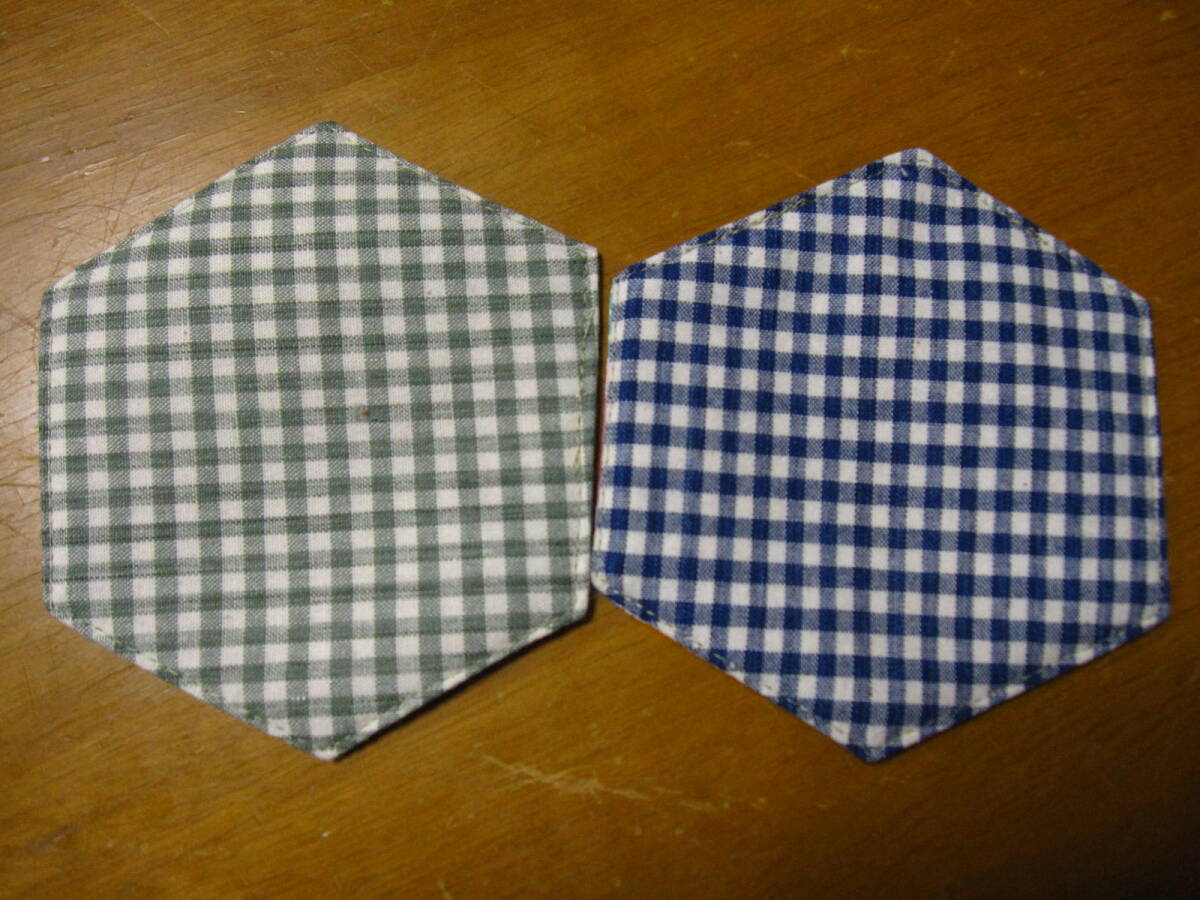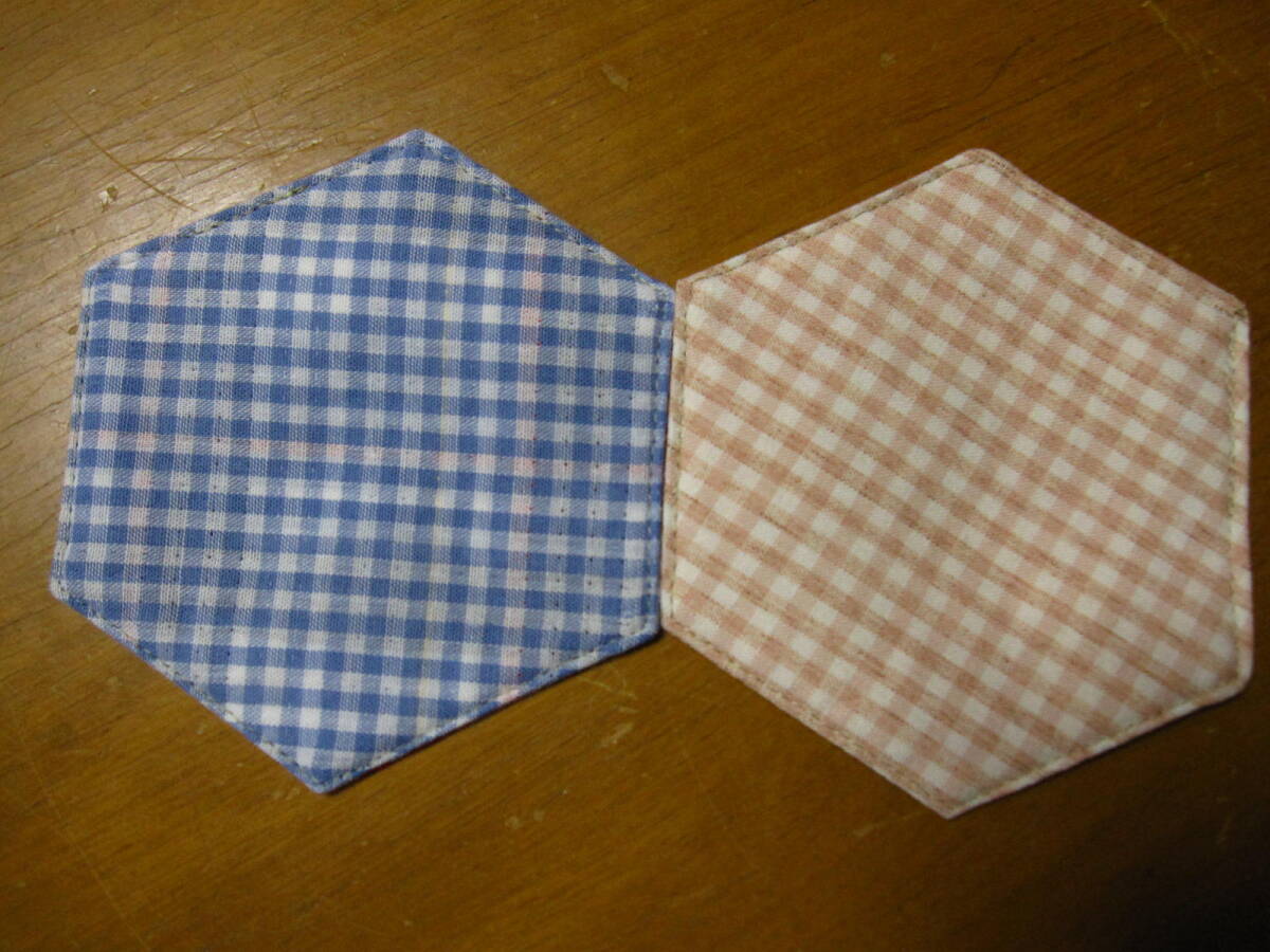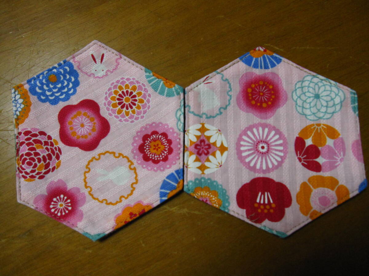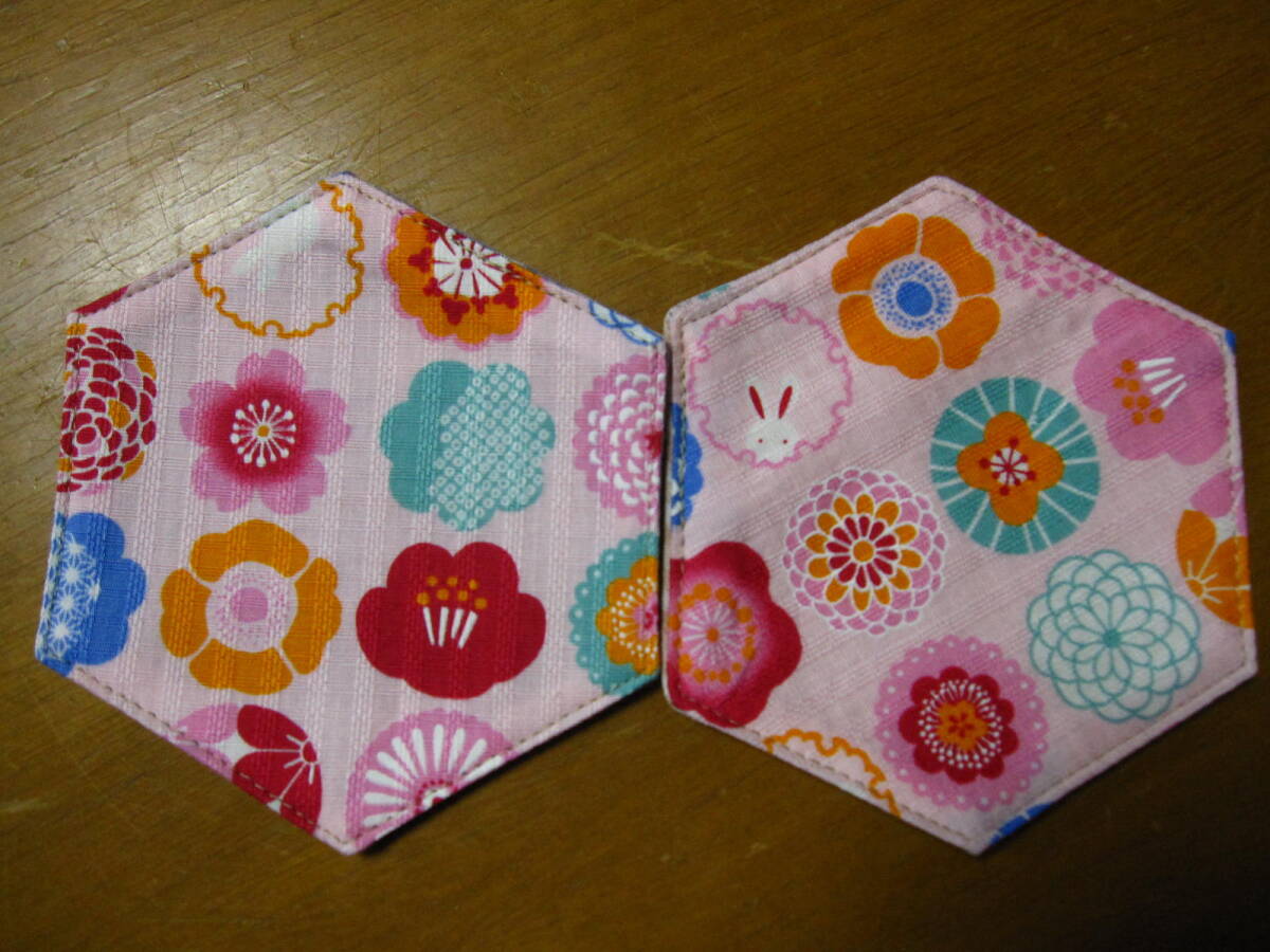 手作り 六角 コースター 4枚 花 うさぎ 模様 華 和 ライン リバーシブル 格安 綿 男女 兼用 秋 冬 セット ハンドメイド 可愛い お洒落 祝い
