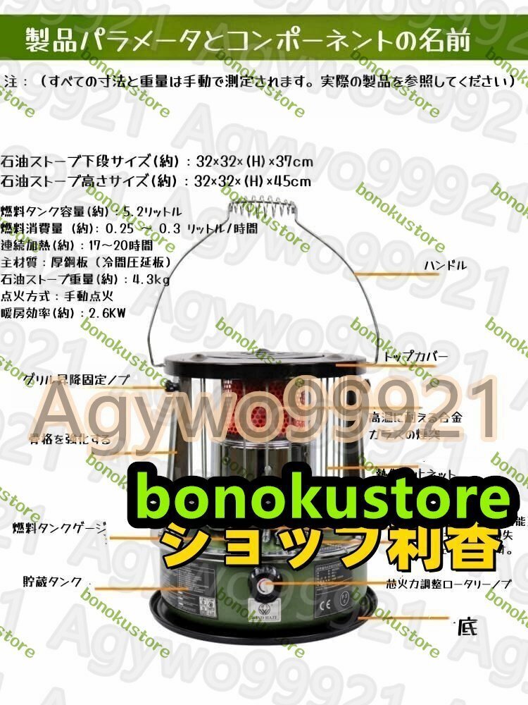 石油ストーブ 対流式石油ストーブ 石油ストーブ 小型 対流式暖房 省エネ 小型 軽量 持ち運びやすい 収納袋付き アウトドア 5.2L 2.6kw 多機能ストーブ 急速加熱ストーブ 360°暖房、軽量ステンレスオイルヒーター、省エネモデル、軽量、小型、持ち運び便利、キャンプ アウト (A ベアメタル + エレベーテッド ラック)