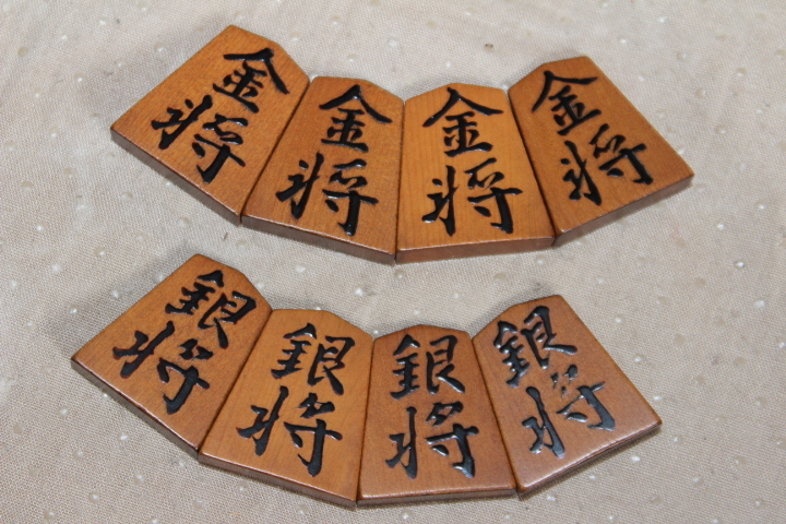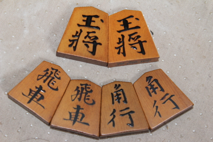 1,将棋駒は、竹内棋州作(無銘)の盛上駒です。
