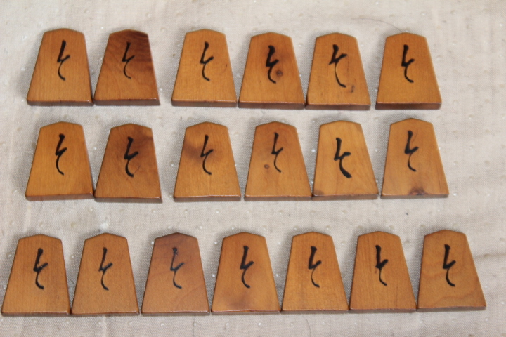4,駒の状態は、長期にわたり使用されいたため、経年による木地の変色や汚れ、漆の摩耗等が見受けられますが、良好に維持されています。