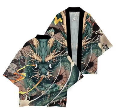 女性のための伝統的なプリント着物,日焼け止め,快適なカーディガン,柔らかい生地,ビーチや休暇用 色: パープル 青龍 サイズ:3XL
