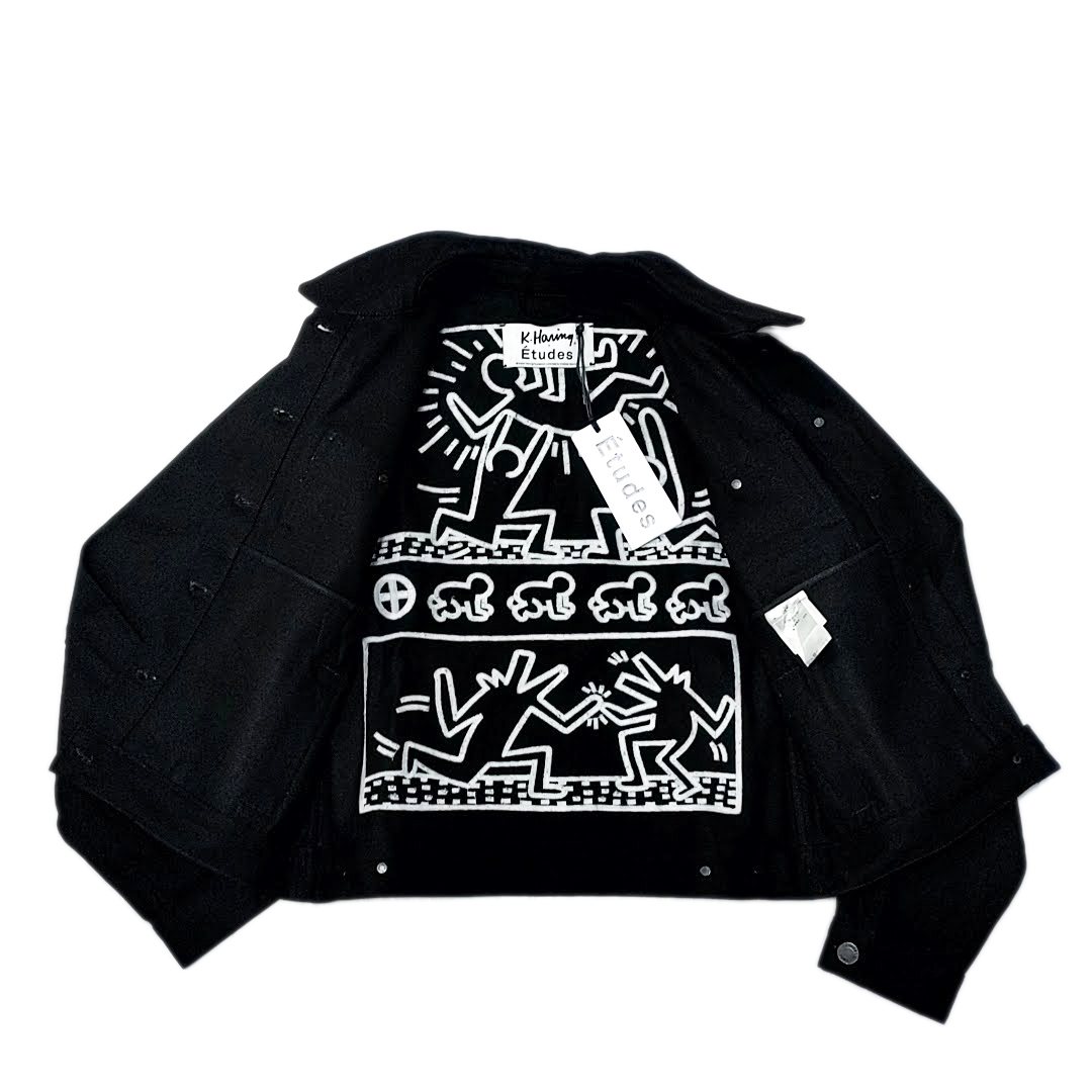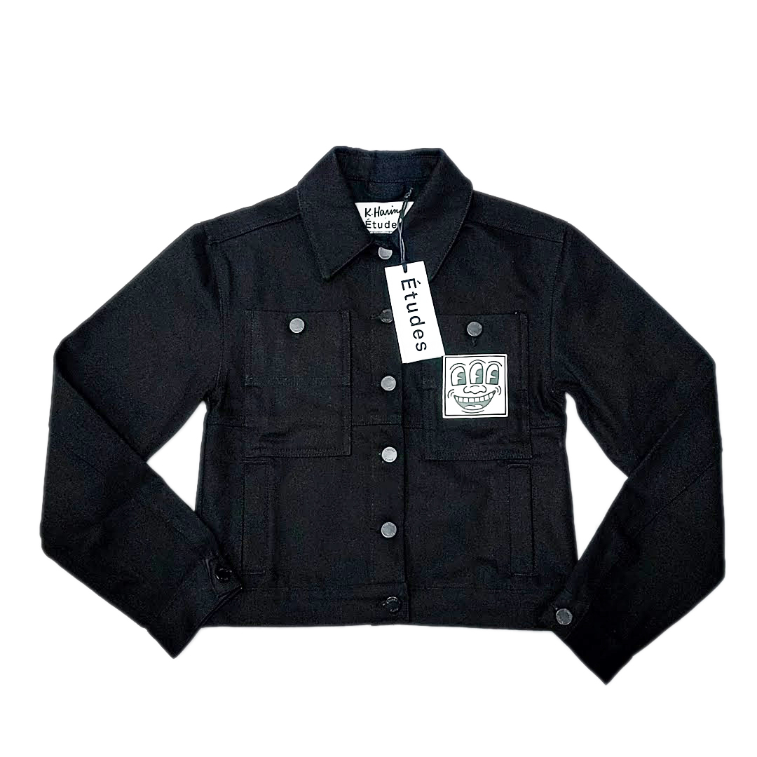 ・送料無料 新品 未使用 エチュード キースヘリング Etudes K.Haring KEITH HARING デニムジャケット ジージャン アウター 裏地なし ブラックデニム CELESTE DENIM E15S-014-KH 36 黒 ブラック系 メンズ
