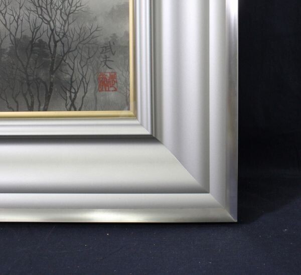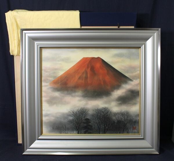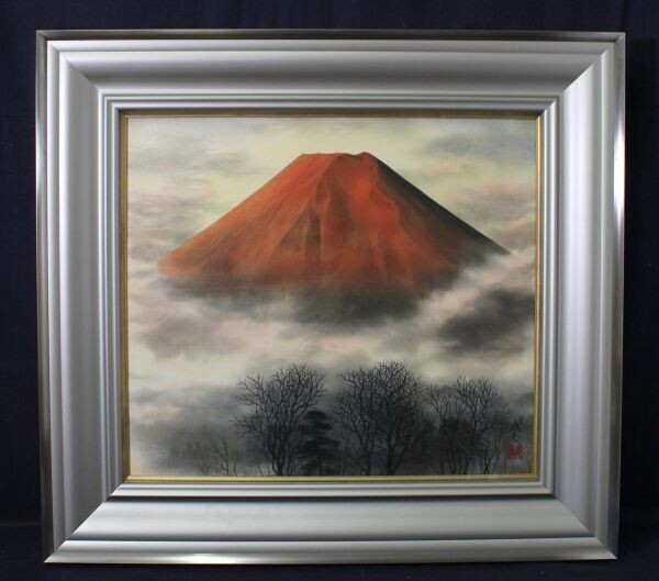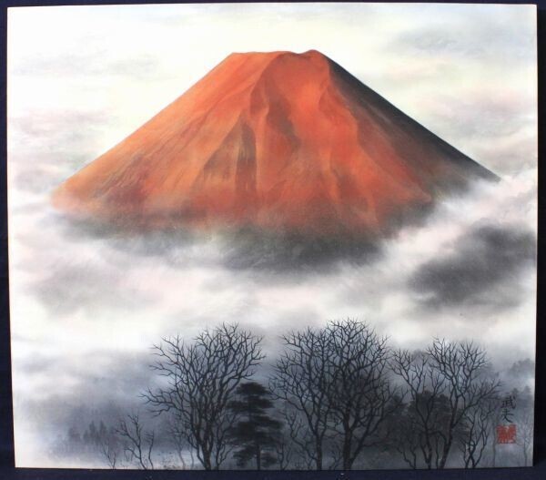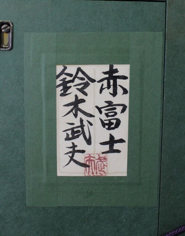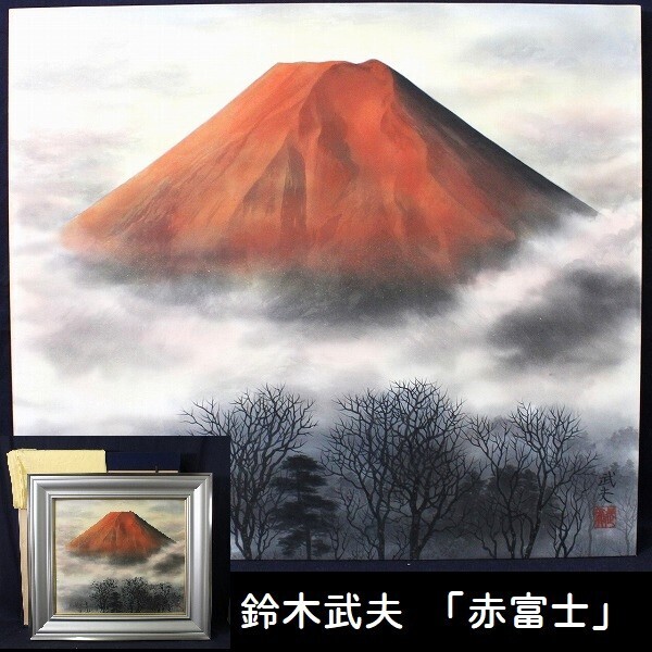 【真作】 鈴木武夫 「赤富士」 日本画 共シール 師:福王子法林 日本美術院特待 D604