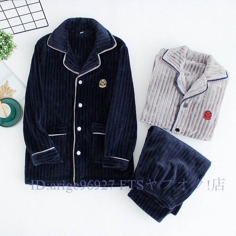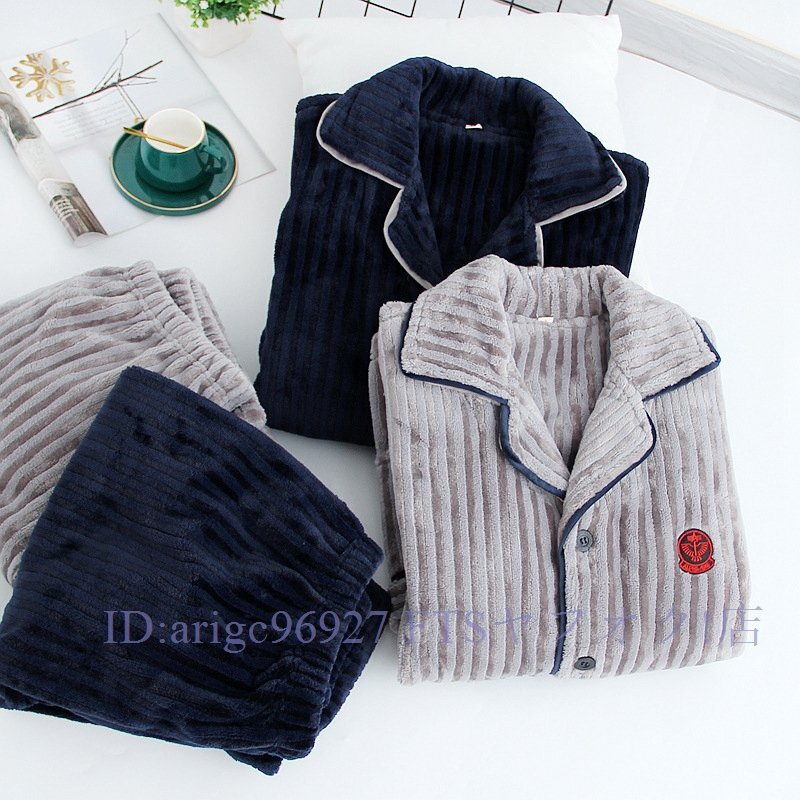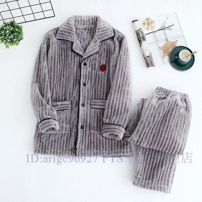 B3206☆新品メンズ 長袖 秋 フランネル 厚手ポカポカ 柔らか 暖かい パジャマ 部屋着ル-ムウエア 心地良