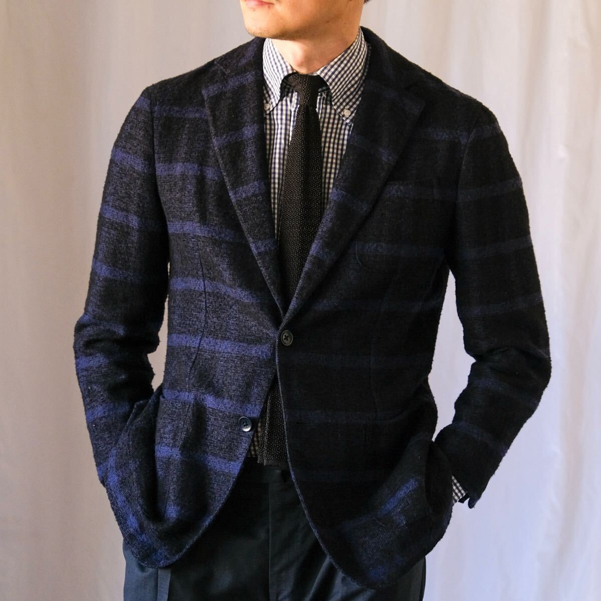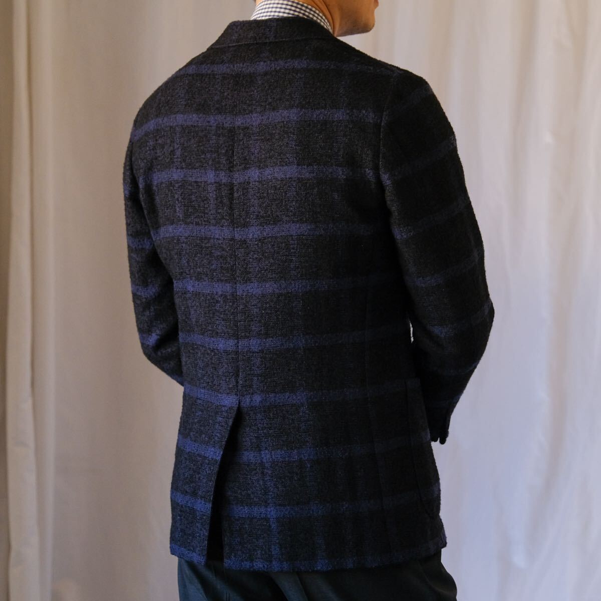複雑な組成生地はエルネストの表情を出す為こだわり抜いたバルキー素材をアンコンのスポーツジャケットに落とし込んだお洒落な1着。