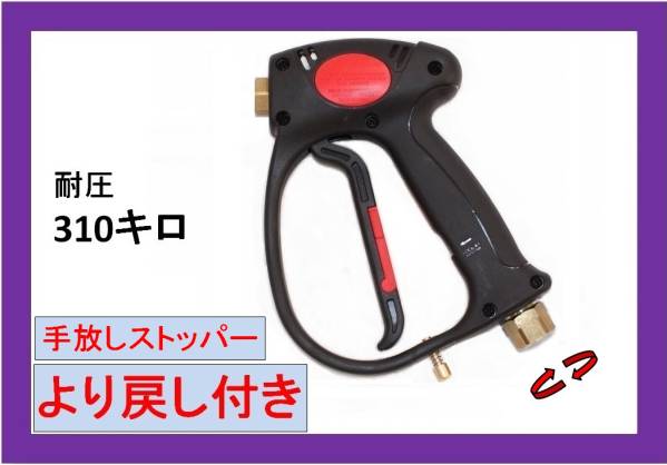 高圧洗浄機用 ガン (より戻し・ストッパー ) 仕様 メーカー : MECCANICA VENETA製 入口サイズ : RC3/8 (約16.5ミリ) 出口サイズ : RC1/4 (約12.7ミリ) 耐圧 : 耐圧 : 275k(28Mpa) 水量 : 25L/min 他のパーツは、下の高圧関係検索から探せます |