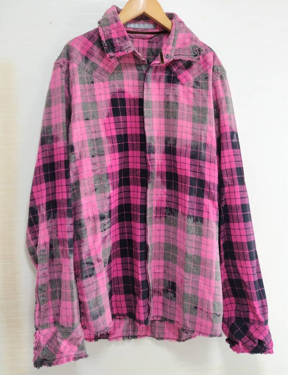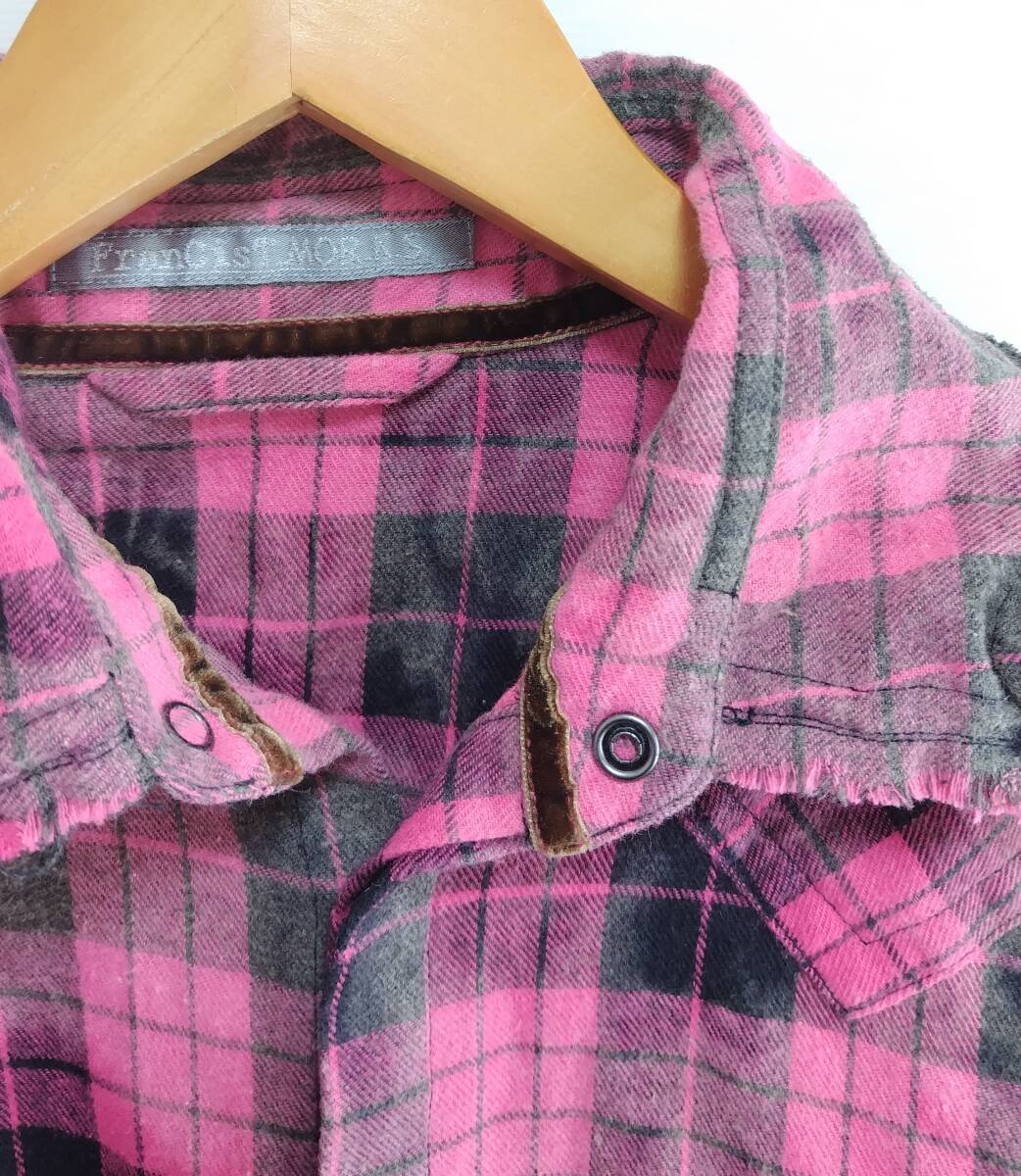 FranCisT_MOR.K.S. フランシストモークス ワイヤー襟 長袖シャツ ネルシャツ チェック フェード加工 3 M メンズ 日本製 Y2K
