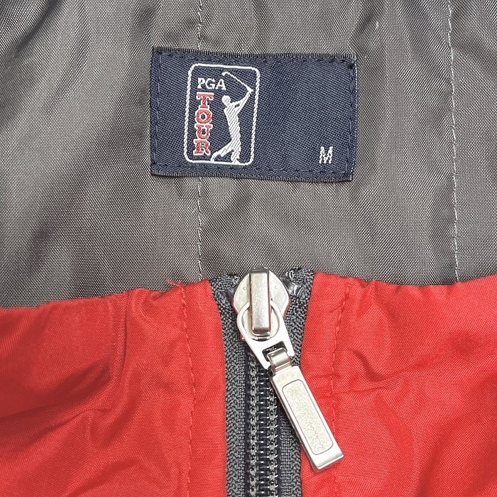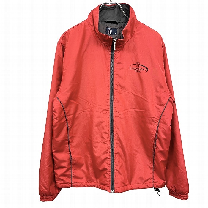 | 商品タイトル | ピージーエーツアー PGA TOUR ゴルフ 少し薄手 中綿 ジャケット ハイネック フルジップ 長袖 ポリ100% M レッド 赤×チャコール メンズ |