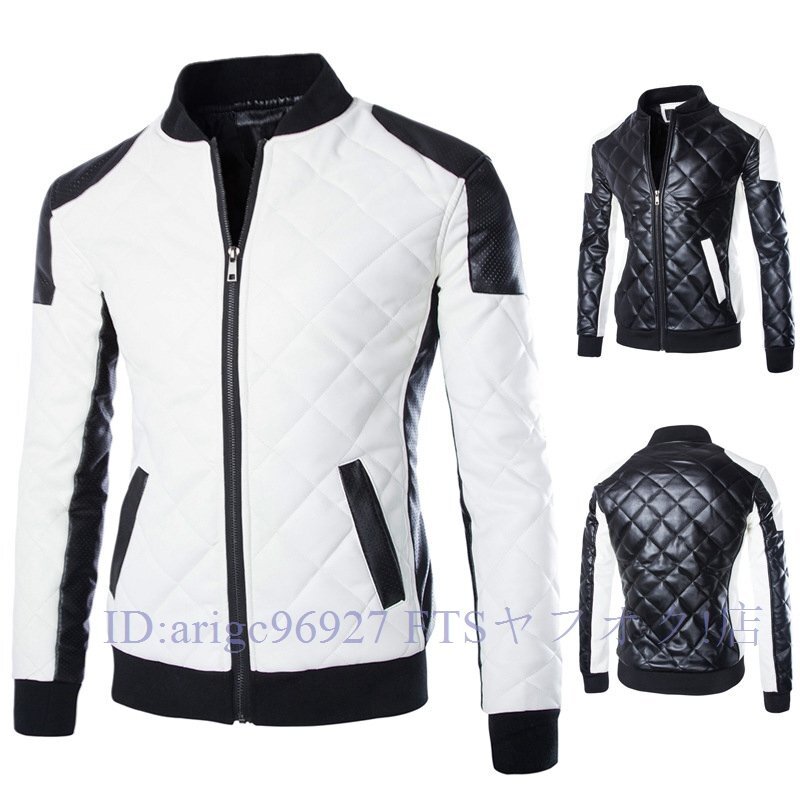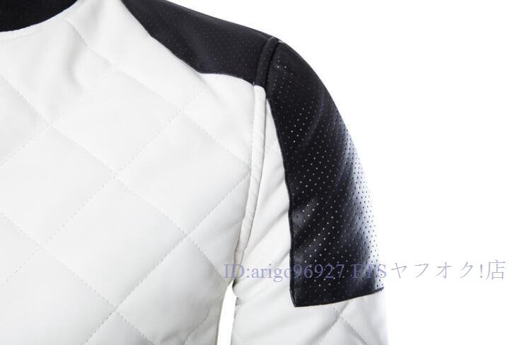 B3490皮革ジャケット 革ジャンバイクジャケット レザージャケット メンズ ライダースジャケット 厚手 ジャンパー ブルゾン 白 M~5XL