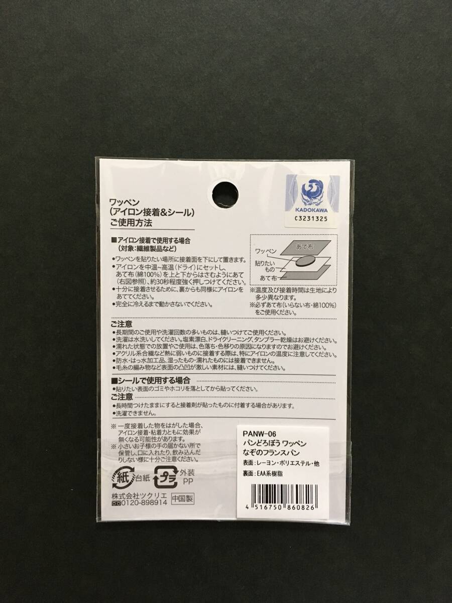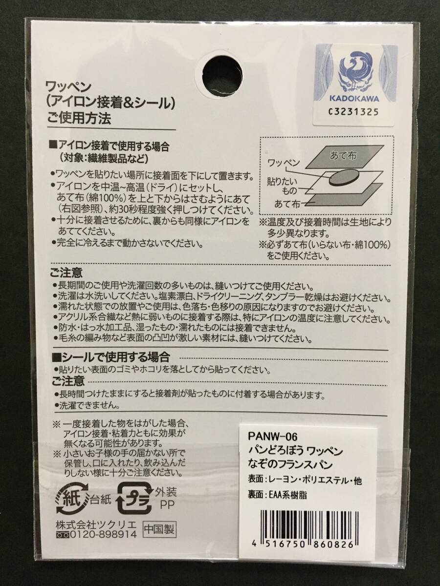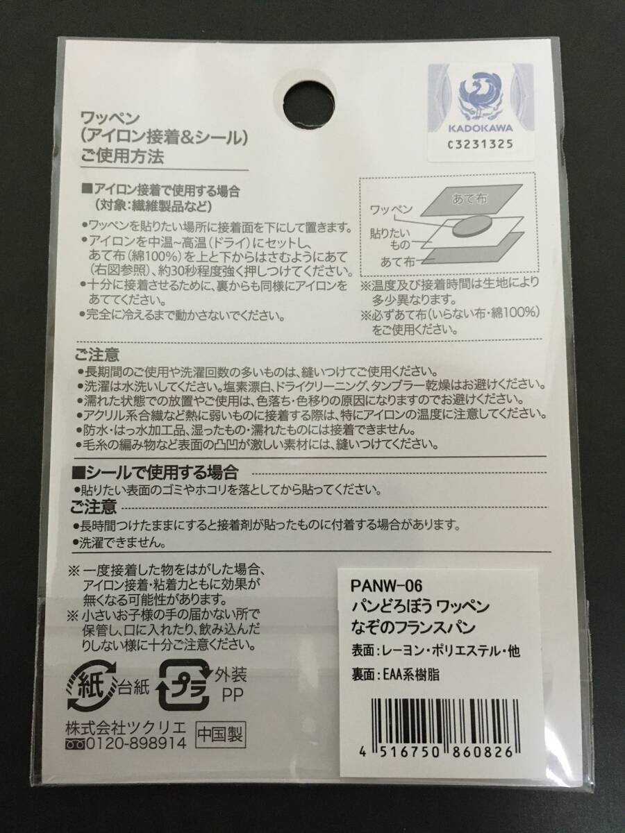 パンどろぼう ワッペン☆彡 なぞのフランスパン☆ 柴田ケイコ 刺繍 シール アップリケ 新品未開封品 KADOKAWA ツクリエ