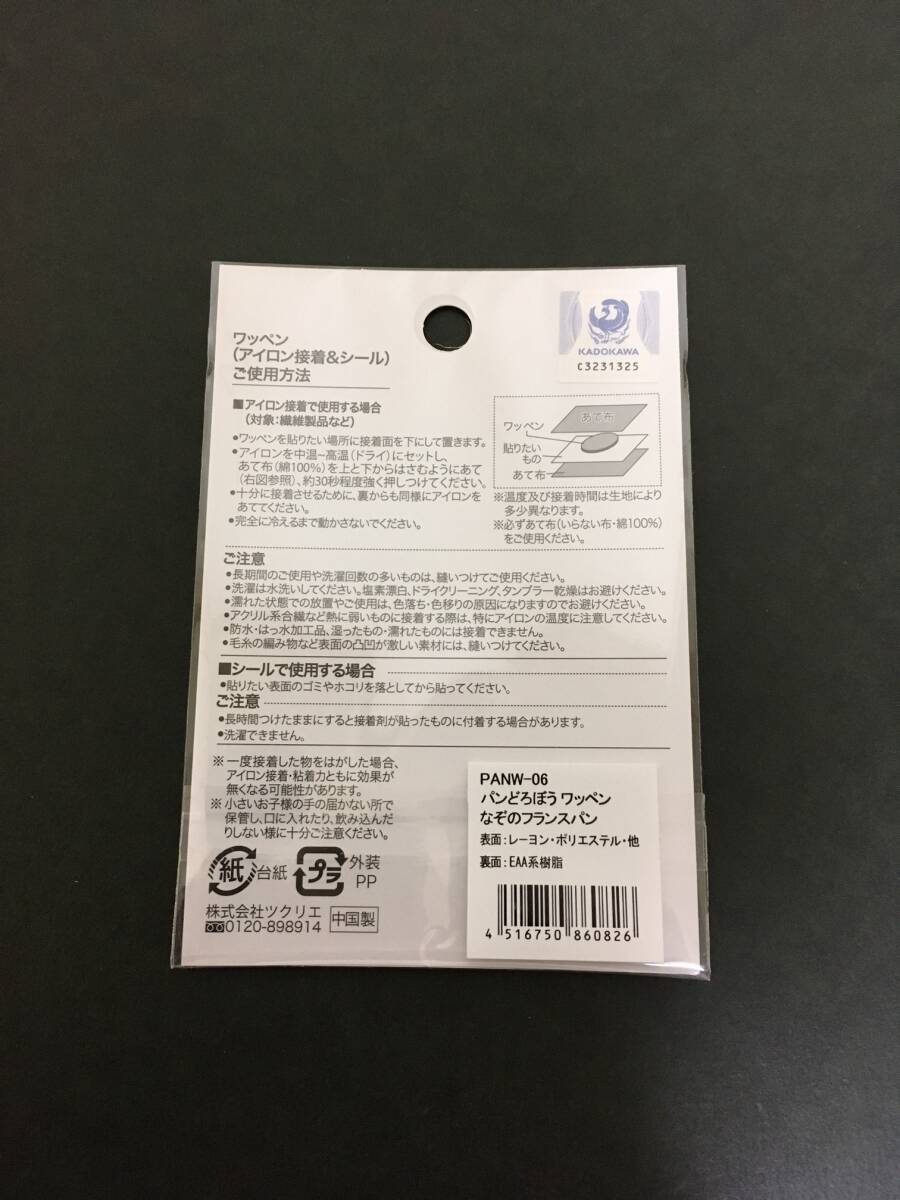 ワッペン 『パンどろぼう アイロン接着ワッペン なぞのフランス PANW-06』