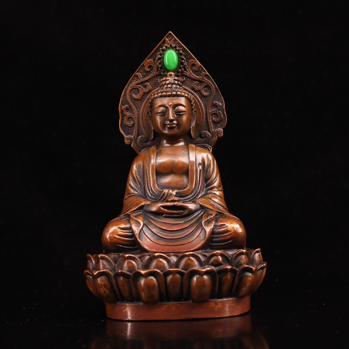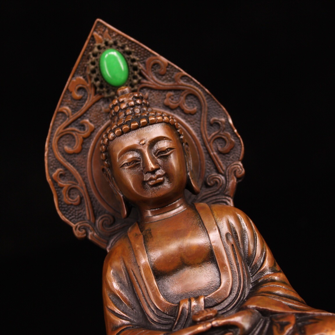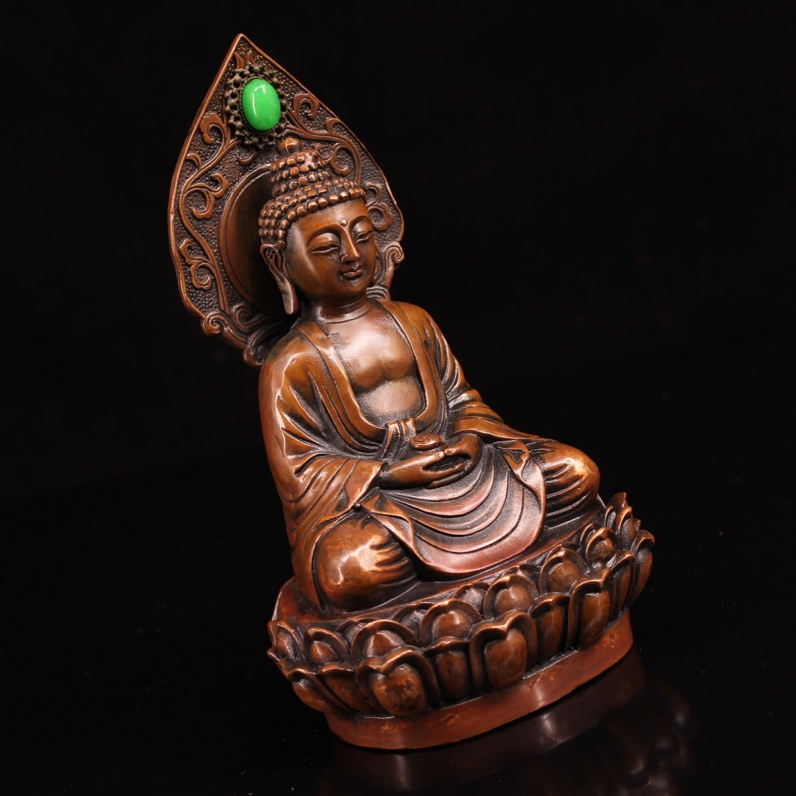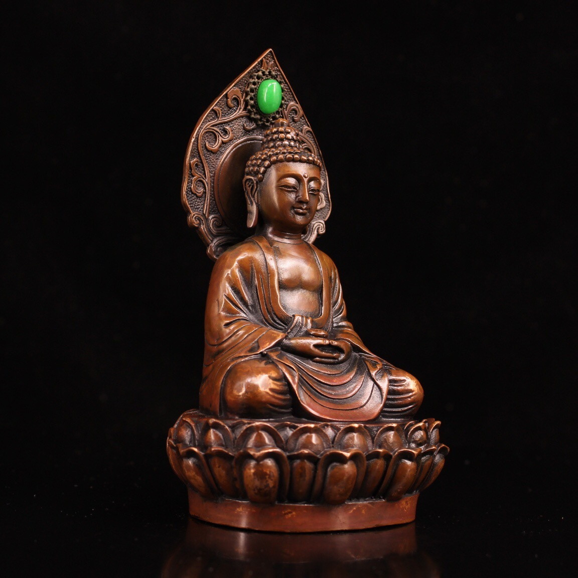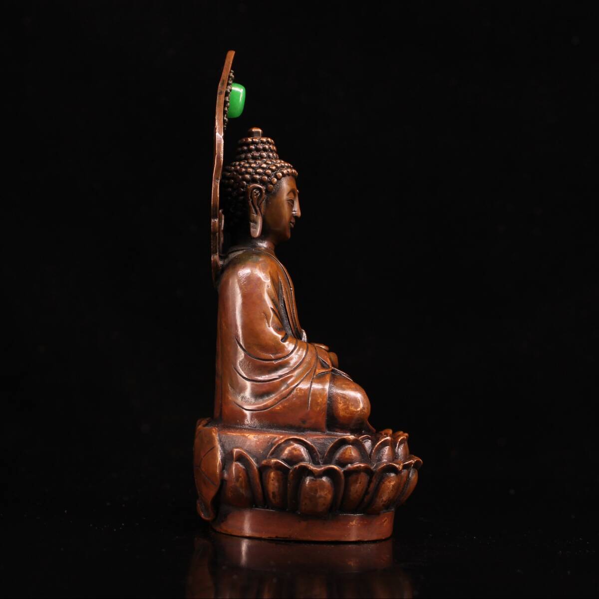 【超珍館蔵】銅製 寶石嵌 釋迦摩尼像 置物 古賞物 古美術品 稀少珍蔵品