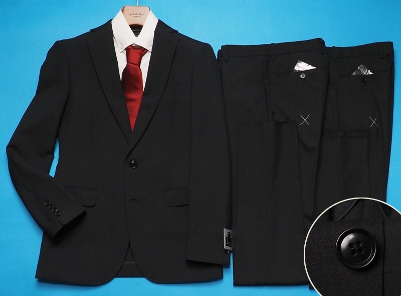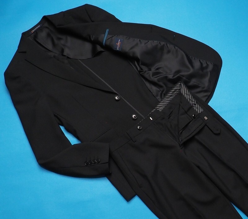 新品 大手百貨店扱い 春夏 ウール混 ソリッド無地 冠婚葬祭OK ツーパンツ スーツ Y7黒(A) 1652672