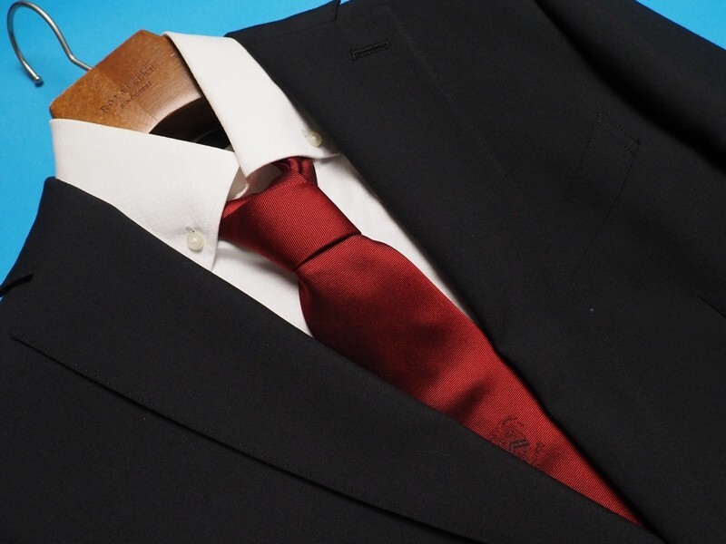 AMFステッチ、ラペル毛芯、裏地のカラーステッチ、パイピング切り替えなど、百貨店向けならではの上級仕立てで仕上げられております。