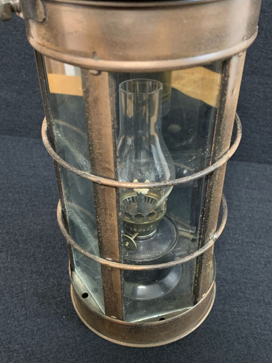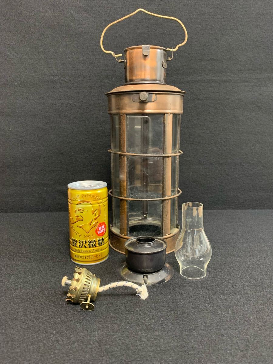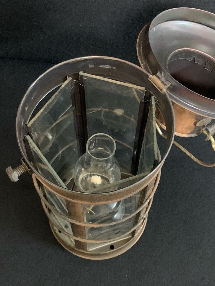 クラシックなオイルランタン、銅製ガラス製、アンティーク