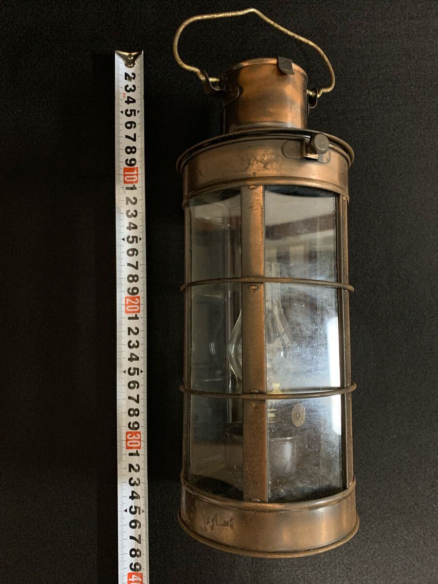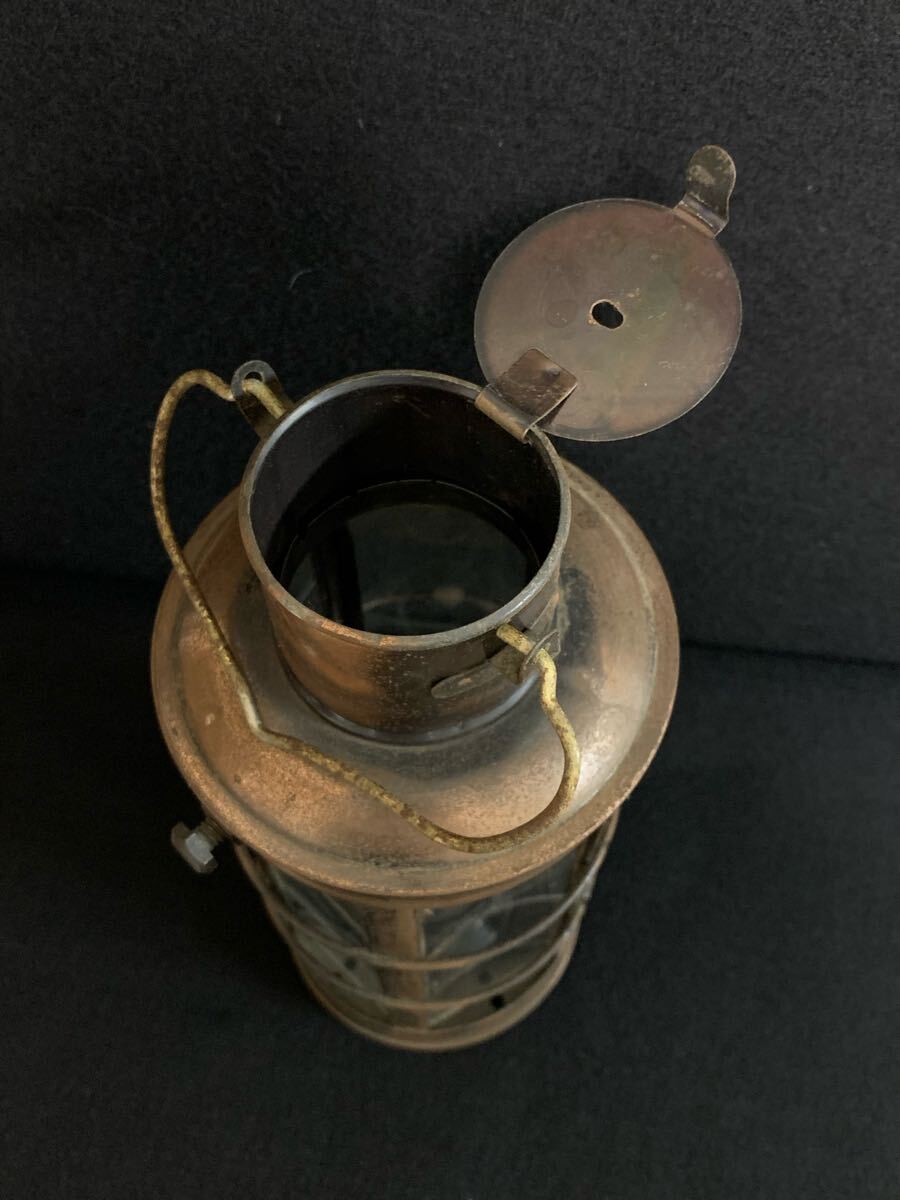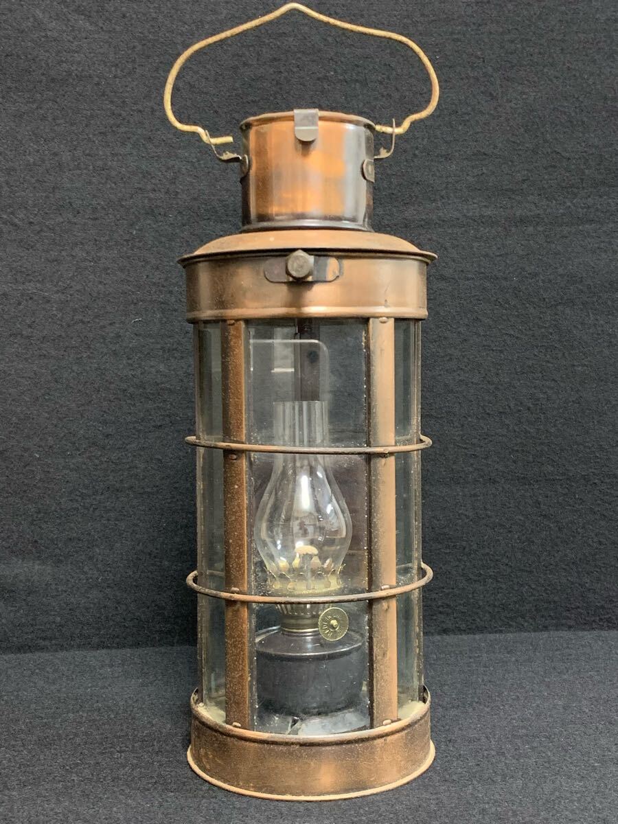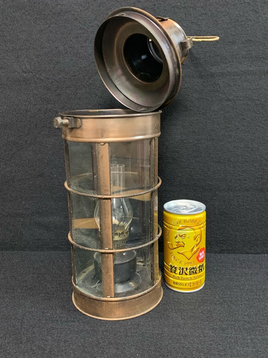 クラシックなオイルランタン、銅製ガラス製、アンティーク