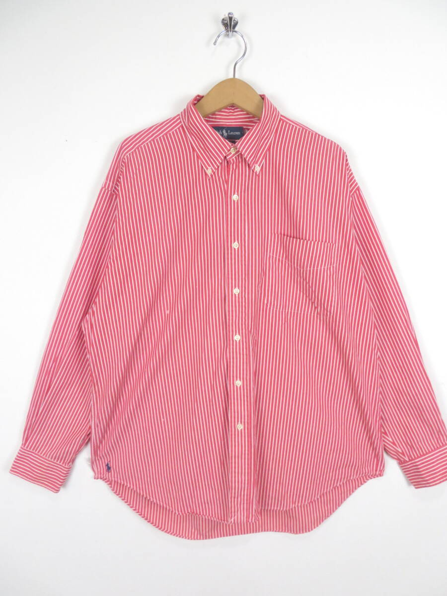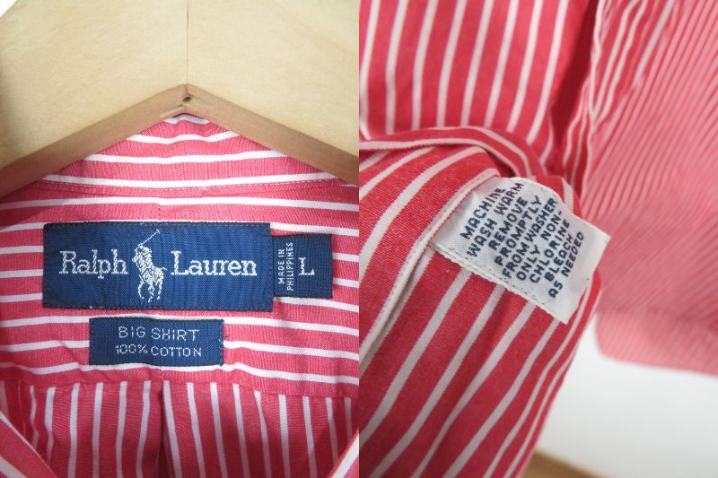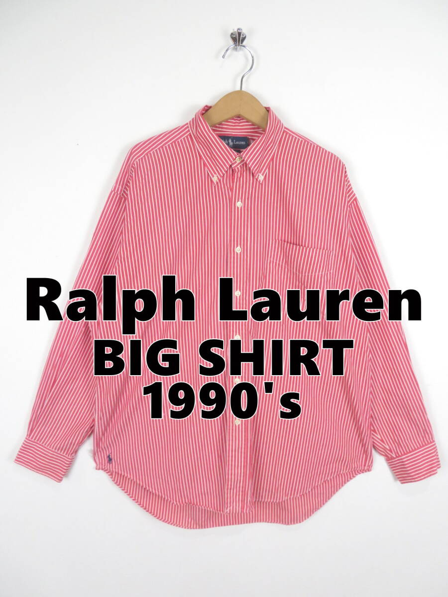 90s ラルフローレン ビッグシャツ 裾ポニー ストライプ 長袖シャツ L ★ Ralph Lauren 90年代 オーバーサイズ BIG SHIRT メンズ 古着 USA