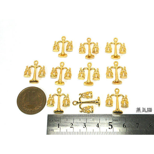 c1158 天秤チャーム ゴールド10個【星座 てんびん座 宇宙 天体 ピアス イヤリング 手作り材料ハンドメイド アクセサリー素材】蒸気猫パーツ