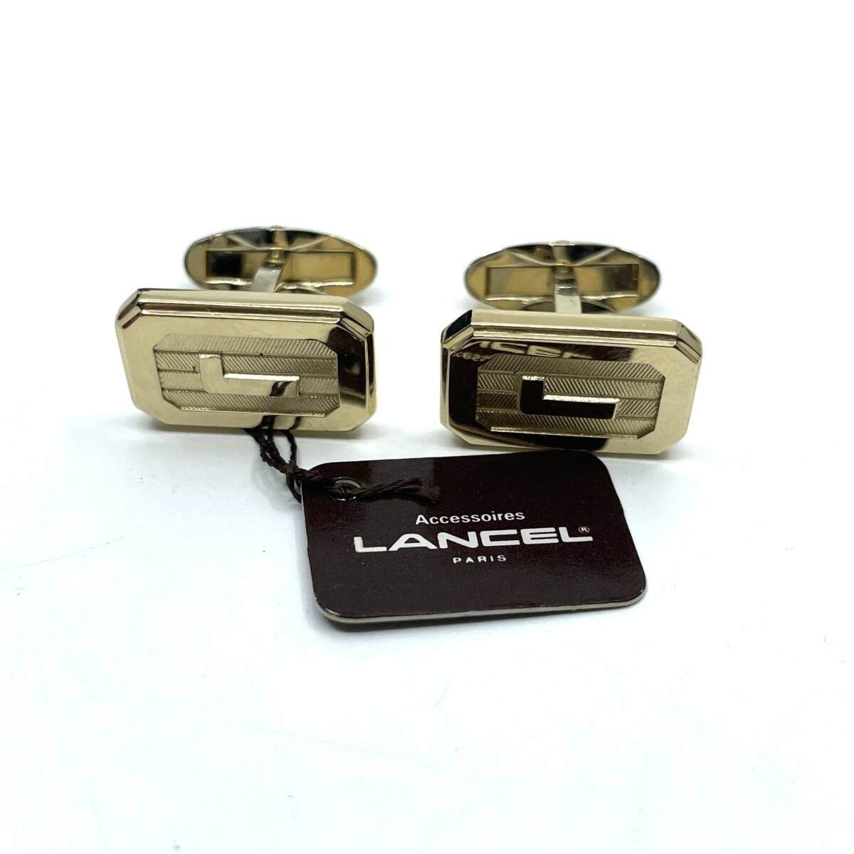 LANCEL ランセル カフス タイピン セット ゴールド オクタゴン ロゴ ラグジュアリー エレガント スーツアクセサリー