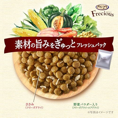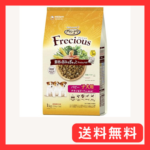 「グラン・デリ フレシャス(Frecious)ドッグフド ドライ 子犬用 チキン&ビフ 1kg国産」▼4520699686270▼(商品説明)-/1kg/4520699686270・Size:1kg・パッケジ個数:1・素材を美味しくフレッシュパックした国産プレミアムドッグフドです。・フリスドライのささみとフリズドライ・エアドライの野菜パウダを、酸化を防ぐ鮮度維持包装することで、いつでも美味しくワンちゃんが喜びます。・12か月頃までの子犬向けの栄養バランスで、愛犬が大好きなチキン&ビフ入りです。・ペット適応年齢:子犬・商品サイズ(幅×奥行×高さ)175mm×140mm×310mm パッケジのデザイン変更に伴い、掲載画像とは異なったデザインの商品が届く場合がございます。あらかじめご了承ください。商品紹介 できたて鮮度の香りと素材の美味しさが実感できる国産プレミアムドッグフドです。 使用上の注意 ・必要な栄養素は生物によって異なりますので、犬以外には与えないでください。 ・まれに体質に合わない場合もあります。普段と違う様子があった場合は、給与を中