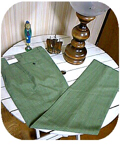 バーゲン市★グリーン色タータンカジュアル2タックパンツW-76cm