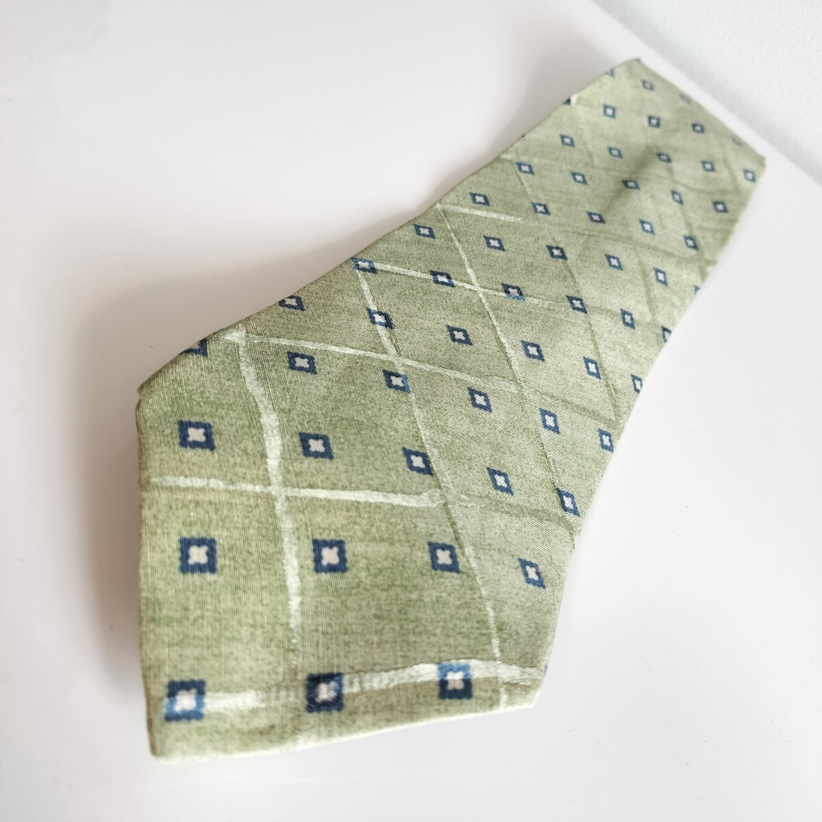 薄緑紺ミクロスクエアドット線ネクタイ